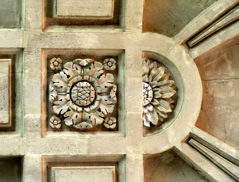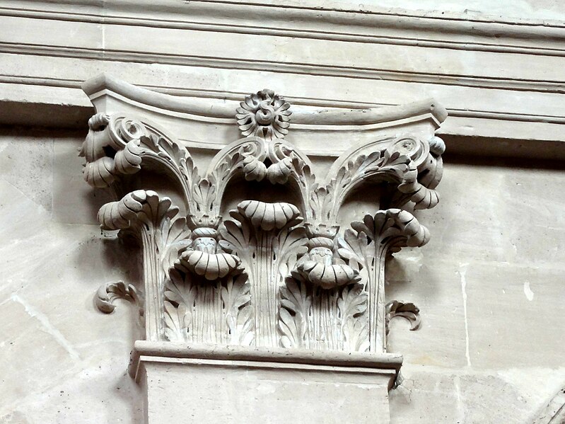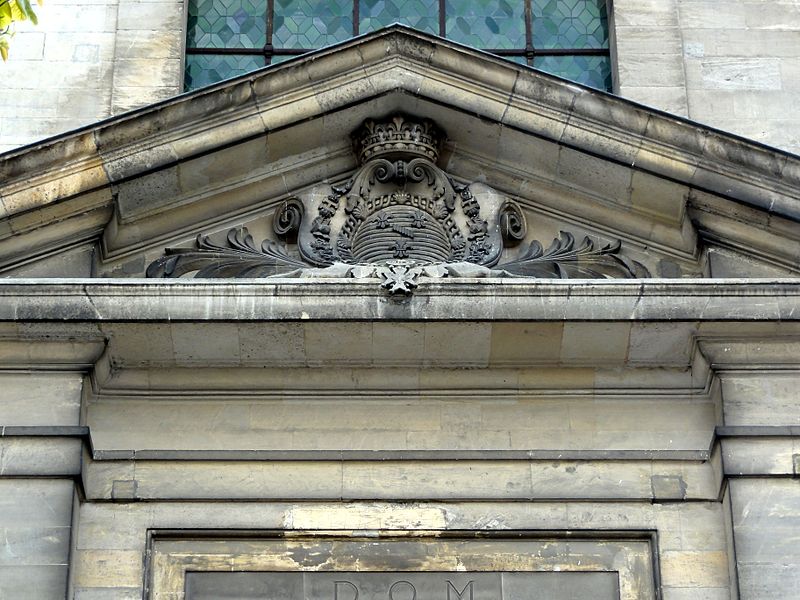 À l’intérieur, l’église présente un plan simple sans transept ni déambulatoire : un narthex flanqué de deux tourelles d’escalier précède un vaisseau central de quatre travées terminé par une abside en hémicycle, accompagné de deux bas‑côtés qui aboutissent aux chapelles de la Vierge et de saint Hubert. Deux pavillons carrés entre bas‑côtés et chœur abritent la base du clocher et la sacristie, et leur étage forme des tribunes destinées à la famille princière. L’élévation intérieure est généralement sur deux niveaux, avec grandes arcades en plein cintre et voûte en berceau pour le vaisseau central ; voûtes et fenêtres hautes sont séparées par un entablement très saillant qui supporte une coursière. Le décor architectural reste sobre : pilastres lisses, bases et impostes moulurées, et chapiteaux corinthiens dont la qualité sculptée est particulièrement remarquée. Les voûtes présentent des bandeaux ornés de cartouches à bas‑reliefs et des caissons, tandis que la décoration sculptée se limite pour l’essentiel à ces éléments et à quelques retables et ensembles du XIXe siècle.