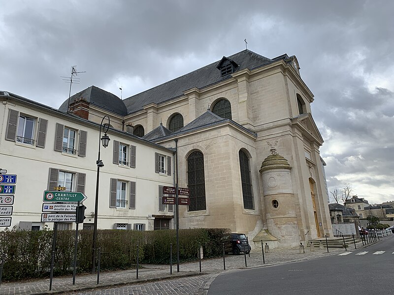 L’église Notre‑Dame de l’Assomption est l’église paroissiale catholique de Chantilly (Oise) et la première église de la ville. Sa construction a été lancée en 1687 par le prince Henri‑Jules de Bourbon‑Condé, conformément au vœu inscrit dans le testament du Grand Condé, et les plans furent établis par Jules Hardouin‑Mansart ; l’édifice fut achevé au début de 1692 et consacré le 31 mars 1692. De style classique sobre, l’église se montra rapidement insuffisante pour la population croissante et fut agrandie entre 1724 et 1734, l’extension se faisant vers la façade et portant la surface à plus de 70 % de celle d’origine ; depuis cette campagne elle a peu évolué. L’édifice, unique dans l’Oise par la netteté de son parti classique, a été classé au titre des monuments historiques par arrêté du 30 septembre 1965. Les lettres de fondation de la paroisse datent de février 1692 et fixent notamment les modalités de nomination du curé et les revenus de la fabrique. Pour répondre aux besoins de la paroisse, le prince dota le curé et les desservants de diverses charges et institua un maître d’école chargé aussi du service de la sacristie.