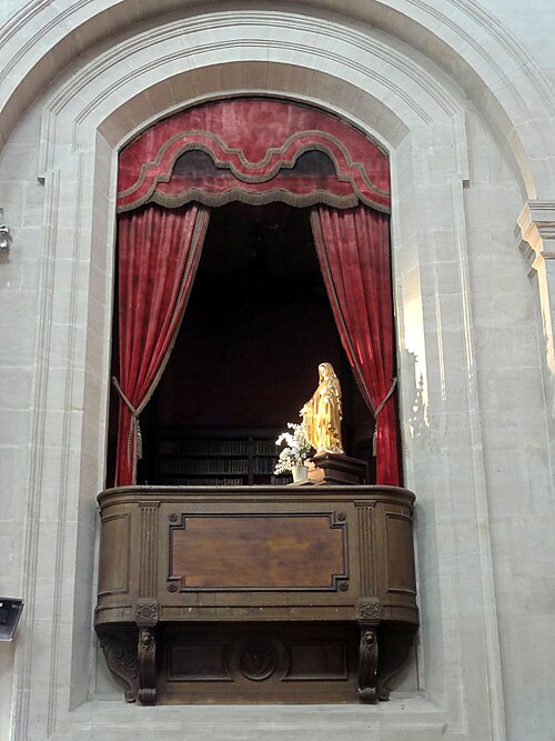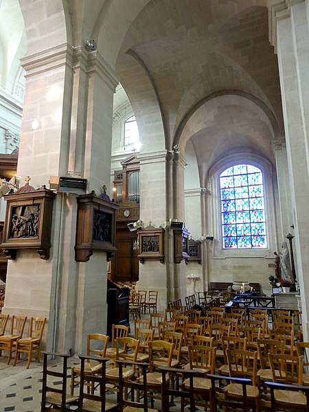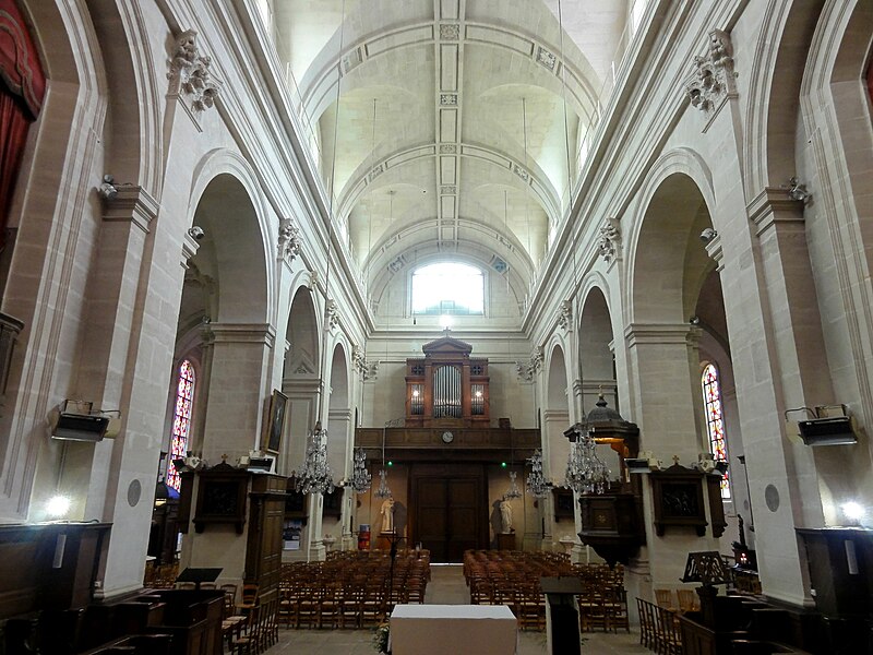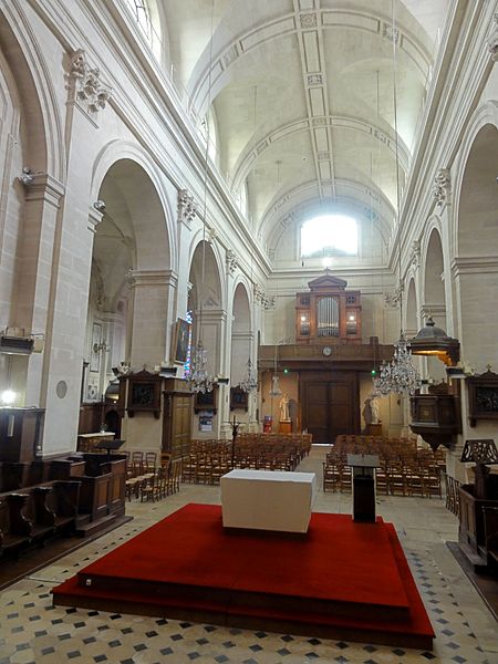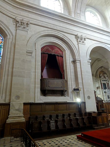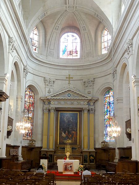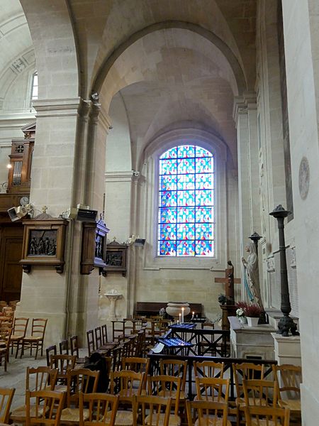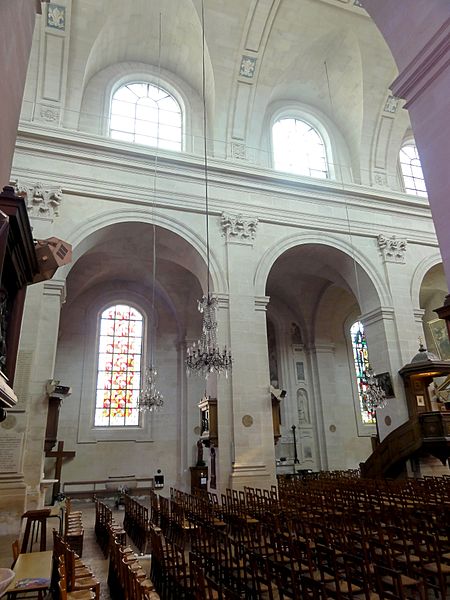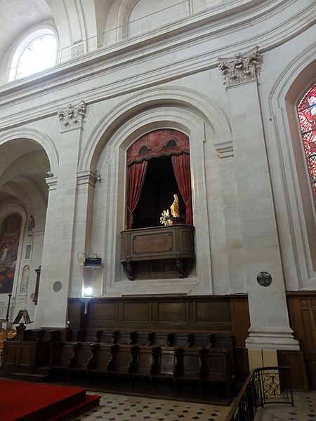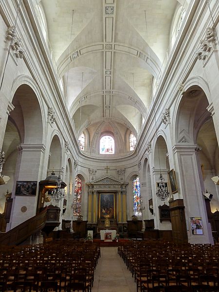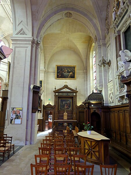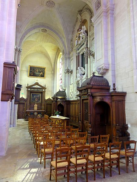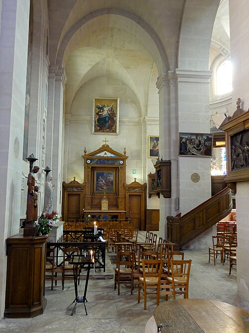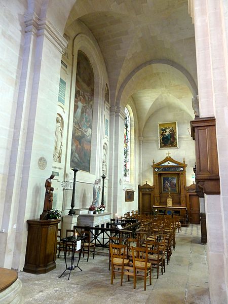 Parmi les monuments intérieurs figurent la chapelle des Âmes du purgatoire, conçue au XIXe siècle avec un retable peint par François‑Léon Benouville et Jules Lenepveu et associée au monument aux morts de la paroisse, ainsi que le monument néo‑baroque aux cœurs des princes de Condé, financé par le duc d’Aumale et inauguré en 1854, qui devint cénotaphe après le transfert des cœurs en 1883. Un petit mémorial rappelle enfin le chanoine Louis Charpentier, déporté et mort à Mauthausen pendant la Seconde Guerre mondiale.