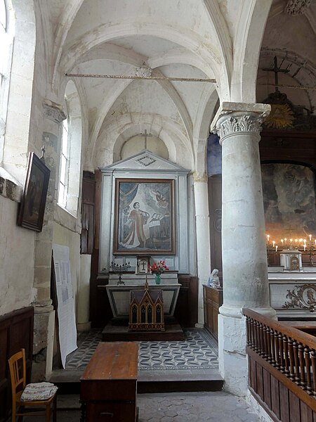Le mobilier comporte des monuments classés : les fonts baptismaux du XIVe siècle, une peinture représentant la Vierge à l'Enfant entourée de saints classée en 1905 et altérée par une restauration malheureuse, une Vierge de douleur en bois anciennement polychrome du premier quart du XVIe siècle et une Vierge à l'Enfant assise en pierre polychrome du XIVe siècle (statues confiées au musée du Vexin français), ainsi que l'ancien maître-autel peint en faux marbre, son tabernacle et le retable du maître-autel couronné d'une gloire et flanqué de pilastres ioniques. Ces éléments soulignent la richesse ponctuelle du décor mobilier, en contraste avec la simplicité architecturale générale de l'édifice.