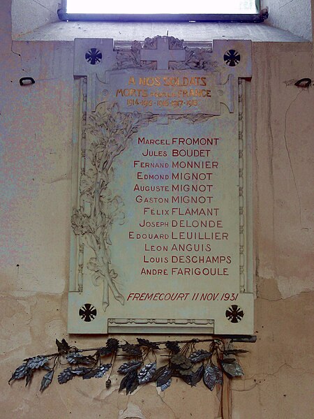 L'église Notre-Dame-de-l'Assomption de Frémécourt, dans le Val-d'Oise, est une paroissiale catholique implantée au cœur du village, sur le plateau du Parc naturel régional du Vexin français qui domine la vallée de la Viosne. Elle associe un petit chœur de la Renaissance à un transept et à une nef en partie romane, fortement remaniés, tandis que le clocher conserve un caractère roman marqué par la transition vers un plan octogonal au-dessus de l'étage de beffroi. Le portail occidental, influencé par le Classicisme et apparemment remanié autour de 1700, témoigne des réparations effectuées lorsque l'édifice risquait l'effondrement. À l'intérieur, les fonts baptismaux du XIVe siècle, richement sculptés, constituent l'élément mobilier le plus remarquable, de même que la sculpture originale des chapiteaux et des clés de voûte du chœur, qui s'écarte des conventions de la Renaissance. L'édifice est inscrit au titre des monuments historiques par arrêté du 28 juin 1974 et attend une restauration intérieure ; la pratique religieuse y est aujourd'hui quasi éteinte, avec seulement deux messes dominicales par an et quelques fêtes particulières.