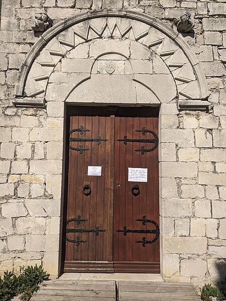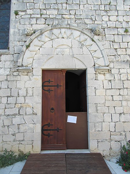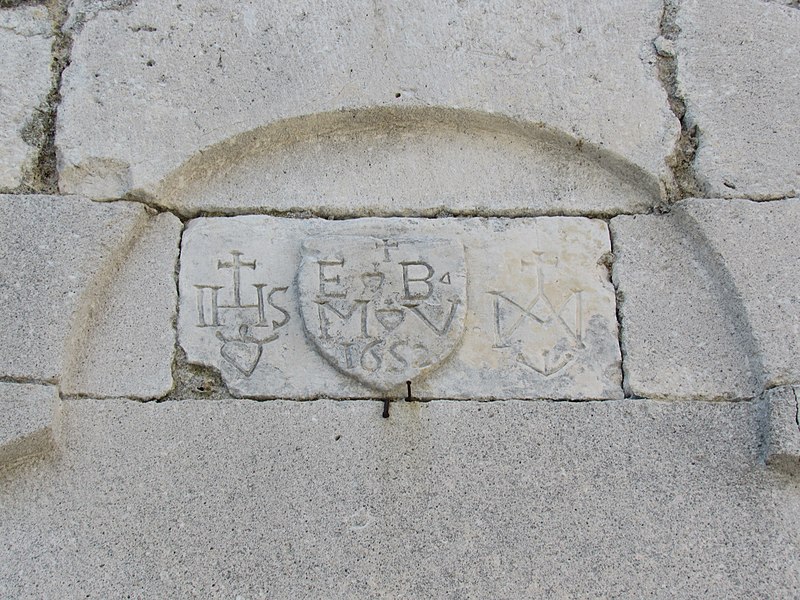 Date gravée sur le tympan, indiquant une reconstruction probable à partir d'un édifice plus ancien.