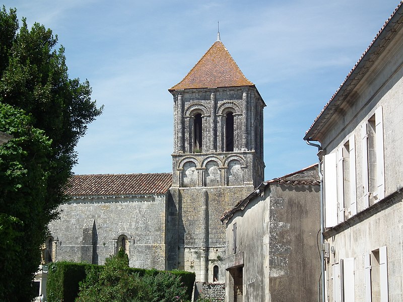 L'église Notre-Dame-de-l'Assomption de Jazennes (Charente-Maritime, Nouvelle-Aquitaine) est un édifice roman saintongeais du XIIe siècle. Elle conserve son porche, son clocher et une abside voûtée, tandis que la nef a perdu sa couverture primitive : autrefois voûtée en berceau, elle est aujourd'hui couverte d'un plafond. Les doubles colonnes du portail ont été brisées aux XVIe et XVIIe siècles. Le clocher, placé au-dessus du chœur, présente à son dernier étage une coupole octogonale étayée par des trompillons. De facture cistercienne et aux proportions harmonieuses, l'église a été édifiée en deux campagnes : d'abord l'abside et la travée du chœur, puis, après 1150, la tour du clocher, la nef et la façade occidentale. L'ensemble a été martelé lors des guerres de Religion. La façade ouest, typiquement saintongeaise, offre un large portail central encadré de deux petits portails latéraux aveugles, surmontés d'un étage à fines arcatures et coiffés d'un petit fronton triangulaire; le clocher carré complète cette composition harmonieuse. L'édifice fait l'objet d'un classement au titre des monuments historiques depuis le 22 mai 1905. Pour aller plus loin, on peut consulter les notices et ressources consacrées à Jazennes, aux monuments historiques et aux églises de la Charente-Maritime, ainsi que les bases en ligne telles que Mérimée, Clochers de France et l'Observatoire du patrimoine religieux.