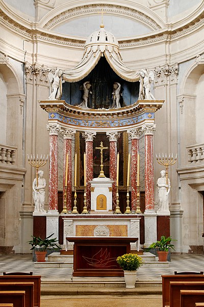 Le maître-autel, le retable et le dais du chœur sont classés le 8 juillet 1975; l'autel, érigé en 1828, est de Bastiani Pezzeti et les colonnes du dais en porphyre datent de 1840. La chapelle du Rosaire, à l'extrémité du collatéral gauche, abrite un autel en marbre blanc surmonté d'une statue de la Vierge; sur la paroi gauche, un tableau de Reynaud Levieux, classé le 8 juillet 1975, représente Notre-Dame du Rosaire remettant le rosaire à saint Dominique. Dans la chapelle du Sacré-Cœur l'autel en marbre est surmonté d'une statue du Christ; au-dessus se trouve un tableau de Reynaud Levieux, classé le 8 juillet 1975, montrant la Vision de saint Blaise, et les statues d'angle représentent saint Marc avec le lion et saint Luc avec le taureau, pendant de celles de la chapelle Notre-Dame-de-Lourdes.