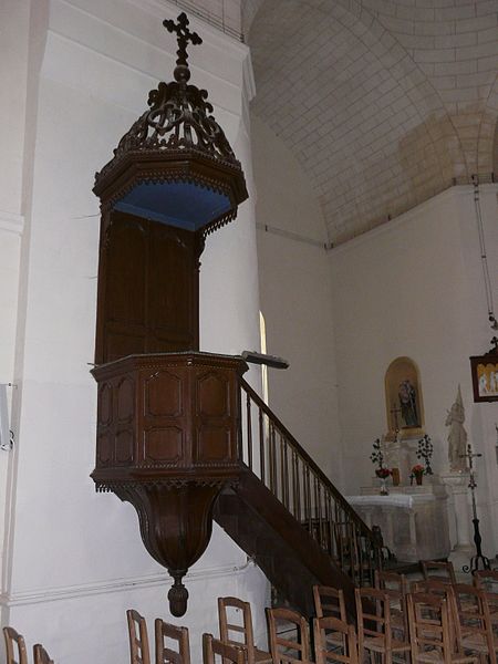 L'édifice comprend une nef, un transept et un chœur rectangulaire à chevet plat. Le carré du transept est voûté d'une coupole sur pendentifs, portée par quatre piles dont les angles intérieurs ont été abattus en pans coupés. La façade ouest est entièrement occupée par un portail en léger avant-corps qui s'enfonce dans le massif par cinq archivoltes décroissantes : les deux premières reposent sur des pilastres, les trois suivantes sur des colonnettes tournées. Un grand mur récent surmonte ce portail et soutient un clocher moderne à quatre baies campanaires. La nef paraît avoir vu ses murs goutterots surélevés aux XIVe et XVe siècles pour assurer la défense de l'édifice durant la guerre de Cent ans.