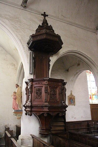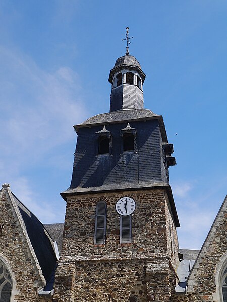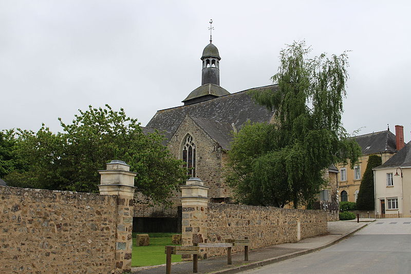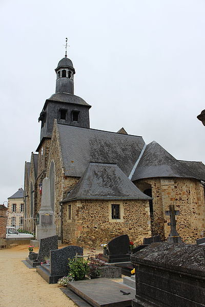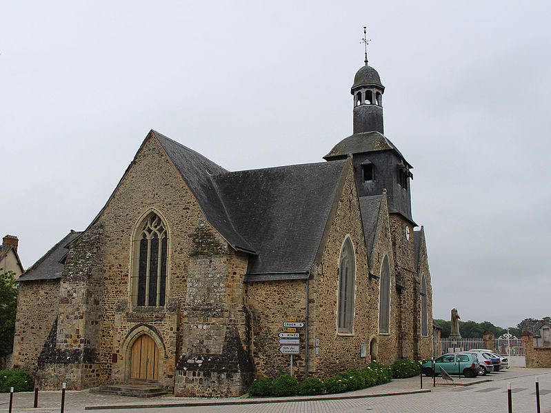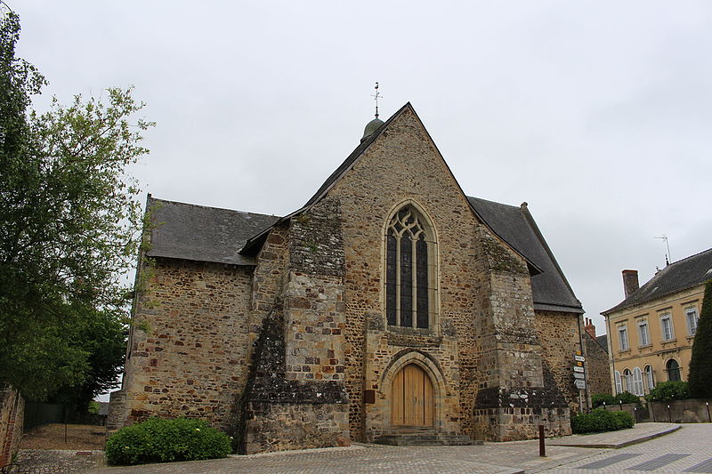 L'édifice, de style roman, est construit en grès roussard. Un clocher latéral, coiffé d'un beffroi en ardoise, d'un dôme et d'une lanterne, marque la silhouette de l'église. Les bas-côtés s'ouvrent par des fenêtres de style flamboyant ; le bas-côté nord date de 1816. Avec l'église Saint-Pierre de Mée, elle figure parmi les rares églises romanes subsistant dans le canton. Le portail en plein cintre a été renforcé par deux contreforts après la guerre de Cent Ans. Le clocher, renversé par une tempête en 1711, a été reconstruit par un charpentier du village. L'église est encore entourée de son cimetière.