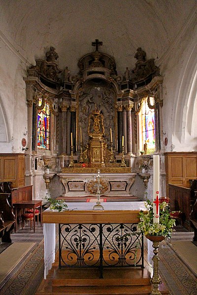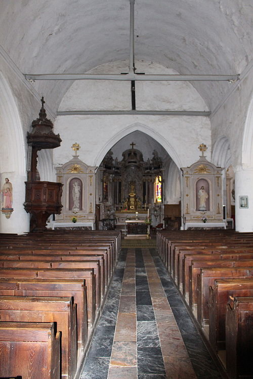 À l'intérieur, les arcades aux chapiteaux sculptés remontent au XVe siècle. Le second bas-côté fut élevé en 1861. Le maître-autel, daté de 1861, comporte un retable monumental en tuffeau et en marbre exécuté par Jean-Baptiste Simon et commandé par Jacques Bernin, inhumé dans l'église en 1689 ; il est surmonté d'un haut-relief représentant l'Assomption de Marie. Le tabernacle en bois doré est l'œuvre d'Antoine Dymkovski, prince polonais réfugié à Craon au XIXe siècle pour échapper à l'invasion russe. Les retables latéraux en bois datent du XVIIIe siècle et ont conservé leur statuaire d'origine. Les vitraux du retable proviennent des ateliers du Carmel du Mans et sont signés Rathouis, et le dais ovale est le même que celui du retable du Coudray-Macouard. L'église renferme également un tableau du XVIIe siècle représentant le Rosaire.