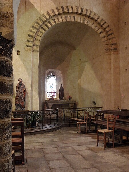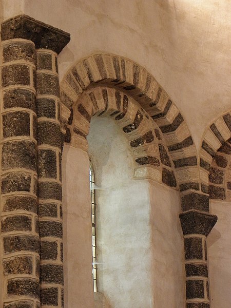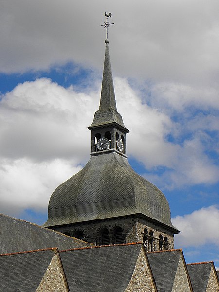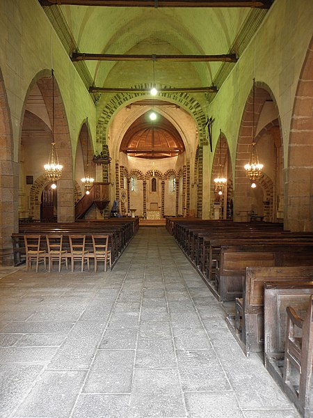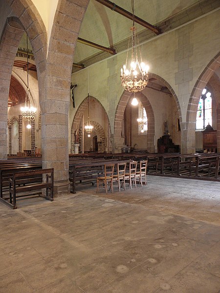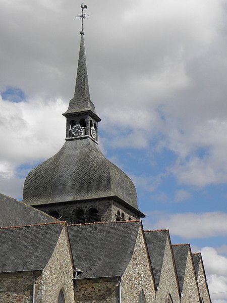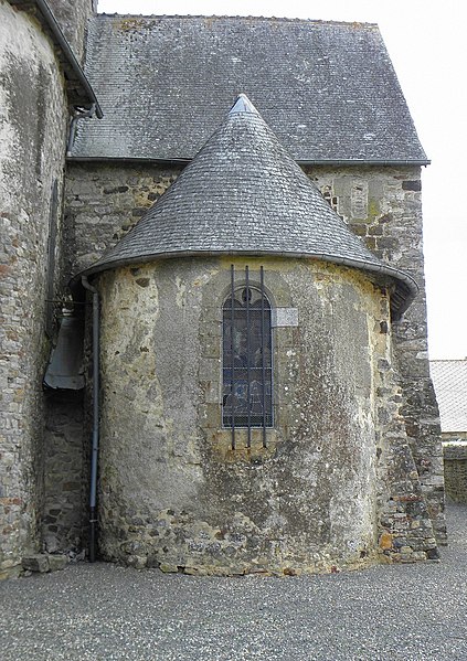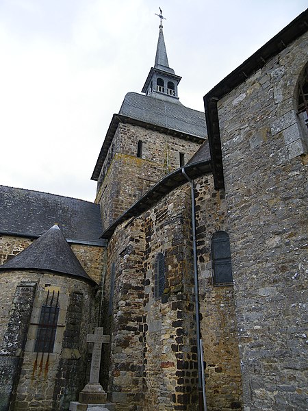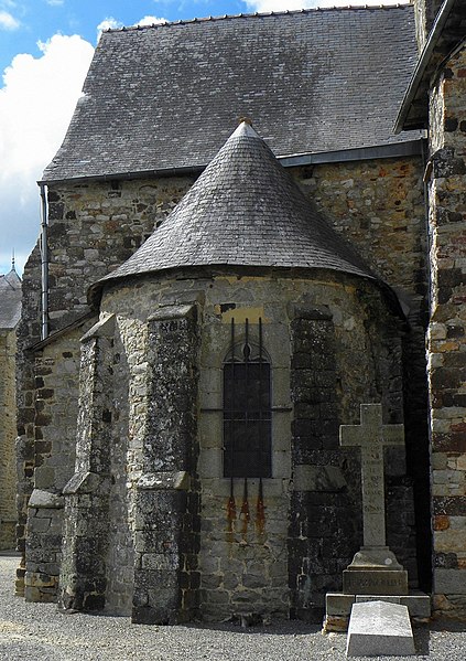 L'église Notre‑Dame‑de‑l'Assomption se situe à Livré‑sur‑Changeon, en Ille‑et‑Vilaine. Fondé en 1023 par Geoffroy Ier, comte de Rennes, le prieuré dépendait de l'abbaye Saint‑Florent de Saumur ; il fut cédé en 1606 aux Jésuites de Rennes puis, après leur expulsion en 1762, au Collège de Rennes. Les parties les plus anciennes, le transept et le chœur, remontent aux XIe‑XIIe siècles ; l'abside et les absidioles datent du XIIe siècle. La nef et le bas‑côté sud appartiennent au XVIe siècle ; le bas‑côté nord a été reconstruit à la fin du XIXe siècle (1887‑1889) par Aristide Folie. La façade ouest et son portail furent repris au XVIe siècle : le portail porte une inscription attribuée au XVIe siècle, lue comme 1515 ou 1551 selon les sources. Le clocher, initialement formant une tour‑lanterne, a été remanié au XVIIIe siècle, et des travaux au XIXe siècle dirigés par Aristide Tourneux concernèrent la sacristie (1847) et le chœur (1863‑1864). L'édifice a été inscrit aux monuments historiques le 6 janvier 1926 ; l'abside et les deux absidioles ont été classées le 21 décembre 1982. L'église présente un plan en croix latine avec une croisée cubique couverte d'une toiture à quatre pans en dôme, surmontée d'un clocheton. Le chevet suit le plan bénédictin : chœur en abside accompagné d'une absidiole sur chaque bras du transept, voûtées en cul‑de‑four et percées de baies en plein cintre. L'intérieur, voûté de charpente, voit la nef s'ouvrir sur les bas‑côtés par de grandes arcades ogivales du XVIe siècle tandis que l'arc diaphragme, roman, est en plein cintre à simple rouleau. Le transept et le chœur conservent une polychromie et un appareillage remarquables du XIIe siècle : les arcs sont montés avec des claveaux alternant grès roussard et calcaire, posés sur des colonnes de grès, ce qui crée un fort effet décoratif. Les bras du transept sont séparés de la croisée par deux arcs de plein cintre superposés, disposition originale évoquant certains modèles carolingiens, tandis que l'arc délimitant le chœur, brisé, signale une reconstruction postérieure. L'absidiole sud a livré des traces de peinture murale, notamment des fleurettes au pochoir probablement datables du XVIe siècle. Le clocher présente sur chacune de ses faces des fenêtres géminées aux cintres portés par de petites colonnettes, et l'édifice conserve un ensemble de quatre cloches fondues aux XIXe et XXe siècles par les maisons Bollée et Paccard. Cet ensemble architectural témoigne d'une longue histoire marquée par des éléments romans bien préservés et par des remaniements successifs aux XVIe, XVIIIe et XIXe siècles.