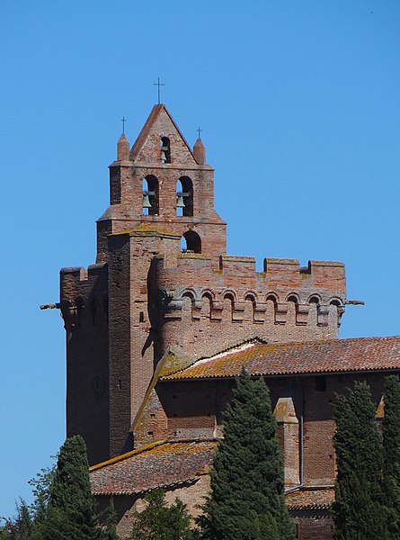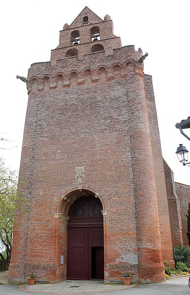 L'église Notre-Dame-de-l'Assomption de Montgeard, paroissiale du village de Montgeard (Haute-Garonne) et intégrée à l'ensemble paroissial de Villefranche-de-Lauragais, a été construite principalement au XVIe siècle et classée monument historique par arrêté du 25 avril 1980. L'édifice, élevé au début du XVIe siècle et achevé par une abside à trois pans, a bénéficié des dons des familles de marchands pasteliers locales, notamment les Durand, les Caussidières, les Ganac et les Faget. Il appartient à la typologie des « églises du pastel » et illustre la prospérité du Lauragais à la Renaissance. Des documents anciens témoignent d'un lieu de culte antérieur sur le même site, mentionné dès 1218 sous le nom de « Notre-Dame-des-Cabanes », rattaché au prieuré de Montgeard par un acte papal de 1318 et évoqué par plusieurs actes et inscriptions du début du XVIe siècle. Le chantier modernisé commence en 1522 sous la conduite de maîtres-maçons successifs, dont Pierre Gabriac puis Jean d'Escalquens, et progresse par étapes marquées par des contrats et des libéralités locales. La nef, d'abord limitée à trois travées et achevée en grande partie en 1528, est ensuite prolongée, tandis que l'imposant clocher-porche occidental, largement financé par les Durand, demeure inachevé et tronqué. L'édifice suit le style gothique méridional : une nef unique de quatre travées flanquée de chapelles à plan barlong entre les contreforts et une abside pentagonale, avec un extérieur sobre et peu ouvert contrastant avec une riche décoration intérieure. Le clocher, massif et carré, est renforcé par des contreforts arrondis et devait recevoir un couronnement qui n'a jamais été réalisé ; un escalier en vis logé dans une tourelle hexagonale sur la face sud dessert ses étages et sa terrasse. Une corniche de consoles reliées par petits arcs en plein cintre forme des mâchicoulis fermés, jadis surmontés de créneaux aujourd'hui disparus ou rétablis au début du XXe siècle, les mâchicoulis étant factices. Le porche, qui occupe le rez-de-chaussée du clocher, est voûté en briques en plein cintre et orné de clés et de culots sculptés en calcaire blond ; la clé centrale associe figures et un saint Jacques, probablement en référence à Jacques Durand, et les culots portent lions, génies, blasons et têtes d'indiens. Deux plaques encastrées dans les murs du porche commémorent en langue d'oc et en français les donations d'Arnaud du Faget et de Jacques Durand, cette dernière posée en 1546. Au sommet du clocher, des gargouilles occupent chaque angle : trois reprennent des animaux stylisés et la quatrième, dite « faunesse parturiente », représente une figure hybride tenant un vase et un enfant. L'intérieur présente une nef voûtée sur croisées d'ogives à liernes et tiercerons retombant sur pilastres et chapiteaux sculptés, la voûte culminant à environ 12,60 m. Les clés de voûte, jugées parmi les meilleures expressions de la sculpture toulousaine du premier tiers du XVIe siècle, figurent successivement les armes de Montgeard, des épisodes liés à Abraham et au Christ, la clé du chœur étant peinte au XIXe siècle et représentant la Vierge. Les chapelles latérales conservent des clés historiées remarquables : la chapelle Saint-Michel montre un archange combattant un dragon, la chapelle Saint-Eutrope présente un évêque d'Orange et la chapelle Saint-Antoine porte une clé flamboyante ornée de saint Antoine ermite accompagné de son cochon. Le mobilier compte un bénitier de marbre blanc importé de Pise en 1516, portant une inscription, ainsi que plusieurs reliefs d'albâtre dits « de Nottingham », fragments d'un retable ancien désormais dispersé. Ces fragments d'albâtre, datés des années 1420-1460, semblent avoir appartenu à un retable consacré à la Vie ou aux Joies de la Vierge et ont été partiellement remployés ou scellés dans les murs lors des réaménagements. La chapelle Saint-Prim et Saint-Clair conserve un retable sculpté en pierre et stuc de facture maniériste, à deux registres, dont les figures en ronde-bosse témoignent de la production toulousaine de la fin du XVIe siècle. Le chœur a été remeublé au début du XVIIIe siècle par des boiseries peintes encadrant des toiles dédiées à la Vie de la Vierge, puis la voûte du chœur et celle de la nef ont été reprises et peintes au milieu du XIXe siècle dans un décor « néo-Renaissance » inspiré de la cathédrale d'Albi, d'où le surnom de « Petit Albi ». L'architecture de l'église est restée en grande partie fidèle au XVIe siècle, malgré des transformations décoratives aux XVIIIe et XIXe siècles, et l'édifice abrite les caveaux et épitaphes des principales familles donatrices, certaines rédigées en langue d'oc.