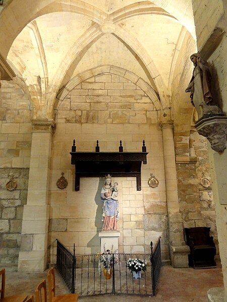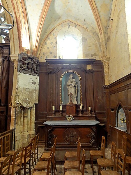 Le mobilier comprend plusieurs œuvres classées au titre des objets : une Vierge à l'Enfant en pierre polychrome dite Notre-Dame du Mont-Carmel (XIVe siècle), un Christ en croix en bois taillé et peint (limite XIIIe/XIVe siècle), une Vierge sculptée placée sous le porche (dernier quart du XVIe siècle) et un bâton de procession du XVIIIe siècle. S'y ajoutent des retables et boiseries d'époques diverses — dont un retable majeur offert par le président Chevalier et dédié à l'Assomption —, la tribune seigneuriale de 1643, un dais de retable gothique flamboyant et la chaire à prêcher offerte par Jean de Dosnon. Plusieurs épitaphes et plaques de fondation émaillent les piles et contreforts, témoignant des donateurs et paroissiens anciens.