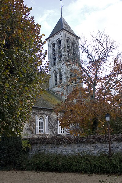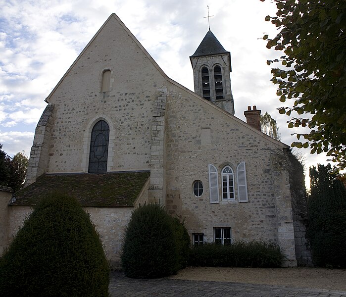 L'église de l'Assomption-de-la-Vierge et Saint-Georges, dite Notre-Dame-de-l'Assomption, est une église catholique située à Noisy-sur-École, en Seine-et-Marne. L'édifice est classé au titre des monuments historiques depuis le 26 septembre 1923. Il se situe au sud de la commune, sur la place de l'Église, dans l'axe de la rue Grande; la façade sud-ouest est bordée par le sentier de la Cure. Fondée au XIIe siècle, l'église conserve un portail et un chœur datés du XIIIe siècle. La nef a été reconstruite au XVe siècle, avec l'adjonction d'une chapelle latérale. L'édifice dépendait de la seigneurie du couvent des religieuses de Chelles-Sainte-Bouldour. Des travaux de remise en état ont été réalisés en 2012. Le plan est allongé : un seul vaisseau converge vers une abside, tandis que le bas-côté sud révèle une ancienne habitation utilisée d'abord comme presbytère puis comme maison particulière. La voûte du chœur est à double tore et certaines lancettes ont été obstruées. Parmi les mobiliers protégés, on compte deux tableaux du XVIIIe siècle — Sainte Anne et la Vierge (170 × 80 cm) et Christ en croix avec sainte Madeleine (168 × 95 cm) — ainsi qu'une dalle funéraire de François Pachau (160 × 85 cm, datée de 1626) ; ces objets sont inscrits au titre des objets des monuments historiques depuis le 7 février 1977. La dalle de François Pachau, une pierre gravée autrefois intégrée au pavage de la nef face au chœur, a été relevée contre le mur sud de la nef. Son épitaphe, martelée, laisse apparaître des fragments dont on lit notamment : « Galet recepveur ... deceda le vendry Seizeime octobre 1626 ... Priez Dieu pour son âme ». L'église conserve également d'autres dalles funéraires, notamment celles des châtelains de Chambergeot et de La Renommière, deux domaines de la commune.