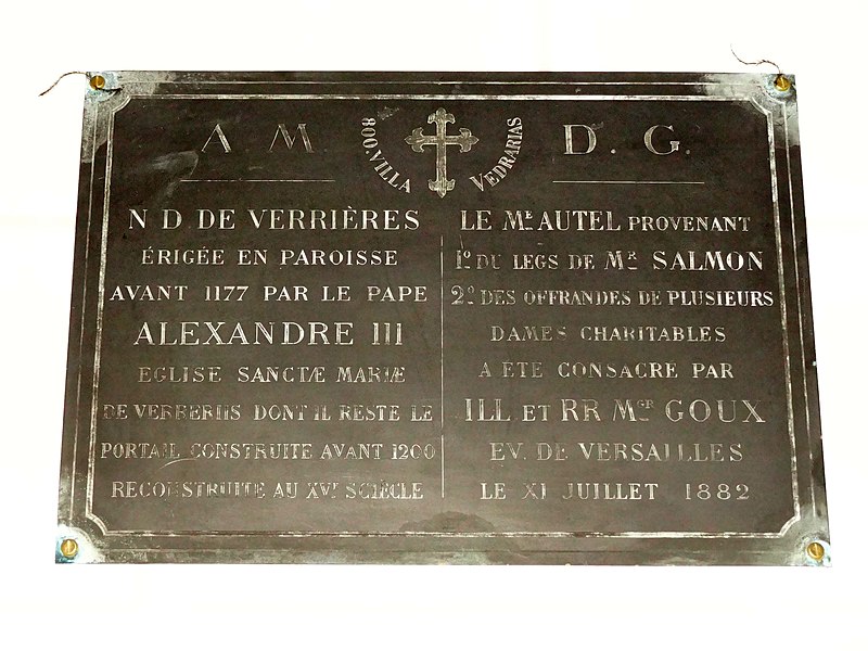 L'église Notre‑Dame‑de‑l'Assomption est une église paroissiale catholique de Verrières‑le‑Buisson (Essonne), dédiée à l'Assomption de la Vierge. Implantée sur le site ancien du village, elle surplombe légèrement le centre‑ville et domine la vallée de la Bièvre ainsi que le château Vaillant. Édifiée à partir du XIe siècle et achevée à la fin du XIIIe siècle, elle a subi des saccages pendant la Guerre de Cent Ans et un incendie lors des guerres de religion. Reconstruite au XVIe siècle, l'église a fait l'objet d'une restauration à partir de 1881, au cours de laquelle le portail et le clocher ont été entièrement refaits. Une inscription partielle aux monuments historiques date du 31 janvier 1972. Construite en meulière et calcaire, elle présente un plan traditionnel : une nef voûtée d'ogives en quatre travées flanquée de deux collatéraux et terminée par un chevet plat. Le portail, ouvert au sud‑ouest, est surmonté d'une importante rosace et encadré par deux paires de contreforts et deux baies ; le pignon porte une croix de pierre et la nef est couverte d'un toit en bâtière. Le clocher, de plan carré, s'élève au nord, est renforcé par des contreforts d'angle et desservi par une tourelle d'escalier en vis coiffée d'une poivrière ; il comporte une horloge et est ouvert au sommet par des baies géminées. Sa couverture forme un toit pyramidal en ardoise à égout retroussé, terminée par une flèche surmontée d'une girouette. Des éléments datent de périodes différentes : le clocher, les corniches latérales et les parties basses de la façade remontent au XIIIe siècle ; la rosace de la façade et certains aménagements intérieurs appartiennent à la première moitié du XVIe siècle. Au quatrième quart du XIXe siècle, on a modifié le dernier étage et la toiture du clocher ainsi que la façade (percements et tympan du portail), aménagé le parvis et perdu le cadran solaire qui s'y trouvait. L'édifice conserve également une tribune en bois, une moulure torse portée par deux colonnes engagées, ainsi que des chapiteaux et des modillons, qui témoignent de son évolution architecturale. Un puits est présent sur le parvis de l'église.