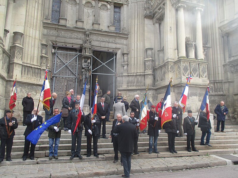 Avant la Révolution, le clocher abritait sept cloches correspondant aux sept notes de la gamme ; trois furent requises pour la défense nationale et envoyées à Paris pour être fondues. Parmi les cloches restantes, la grosse cloche en bronze de 1 850 kilos et 7 centimètres d'épaisseur donnait le do naturel ; fabriquée en 1766, elle fut fêlée et refondue sous la halle en 1821 pour le baptême du duc de Bordeaux. La seconde, de 1,30 m de diamètre, donnait le ré, pesait 1 250 kilos et fut bénite en 1691 ; la troisième, dite Chiméry, datait de 1504 et pesait 200 kilos, tandis qu'un ancien tocsin ajouté pesait 150 kilos et donnait le ré. Après la Libération, Chiméry et l'ancien tocsin furent refondus avec ajout de métal pour créer une cloche donnant le sol, bénite en 1946 en présence de l'archevêque Monseigneur Lamy, du curé Vabois, du maire Condemine ainsi que du député et du sous-préfet de Sens.