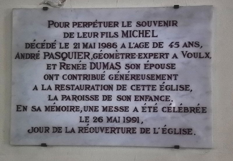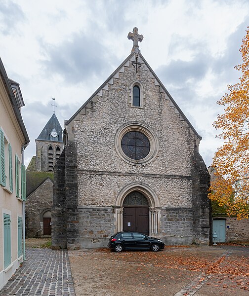 L'église Notre-Dame-de-l'Assomption est un édifice catholique implanté à Voulx, en Seine-et-Marne, sur un terrain traversé par l'Orvanne, cours d'eau canalisé et aménagé. Construite en grès et en calcaire, elle est inscrite au titre des monuments historiques depuis le 17 juin 1926. Édifiée au XIIe siècle, elle a d'abord servi de prieuré dépendant de l'ordre de Saint-Benoît avant de devenir une église paroissiale. Des agrandissements d'inspiration templière au XVe siècle et des remaniements au XVIe siècle ont modifié sa silhouette ; la chapelle du bas-côté nord date du XVIe siècle et le clocher trapu constitue un vestige des enceintes fortifiées de la même époque. Le plan est basilical : une nef à voûtes en croisées d'ogives, flanquée de bas-côtés au nord et prolongée par un chevet droit. Les nervures des voûtes, peintes de couleurs vives à leur croisement, soulignent l'architecture intérieure. Le chevet carré abrite un chœur soigné, réalisé avec un appareillage de grande qualité, et son extrémité est percée d'une grande fenêtre à doubles meneaux. La façade de l'autel est décorée de statues représentant les quatre évangélistes entourant le Christ. Le clocher en pierre se termine par un toit à quatre pans et présente une tourelle extérieure. Parmi les éléments intérieurs, la chaire et des vitraux participent au caractère du lieu. Deux tableaux sont inventoriés : une Vierge à l'Enfant, huile sur toile du XVIIIe siècle, fixée contre le mur sud de la nef et identifiée comme une réplique du tableau de Giovanni-Battista Salvi dit il Sassoferrato, qui conserve des traits de la peinture italienne du XVIIe siècle ; et une toile représentant saint Vincent, datée vers le XIXe siècle. Des ressources complémentaires sont mentionnées sur Wikimedia Commons et dans les bases relatives au patrimoine religieux et architectural, notamment Mérimée et le site Clochers de France.