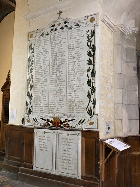 L'église Notre-Dame de l'Espinasse se situe au centre-ville de Millau (Aveyron, Occitanie) et bénéficie d'une protection au titre des monuments historiques. En 1070, Béranger II, vicomte de Millau et de Gévaudan, donna l'église et un terrain aux bénédictins de l'abbaye Saint-Victor de Marseille, qui y implantèrent un prieuré. L'édifice fut consacré par le pape Urbain II après son prêche pour la première croisade. Au XIIIe siècle, il portait le nom de Notre-Dame de l'Espinasse en raison d'une relique, une épine de la Sainte Couronne. Pendant les guerres de Religion, au cours du XVIe siècle, l'église et le prieuré furent à plusieurs reprises attaqués et partiellement détruits ; statues, images et instruments de culte furent brisés et les moines dispersés, si bien que le culte catholique fut interrompu et l'édifice laissé à l'abandon. Le clocher s'effondra en 1613. La reconstruction commença au XVIIe siècle : Jacques Beaudouin dressa les plans en 1633, puis les travaux se poursuivirent sous la direction de Jean Favières et Julien Baudoin entre 1641 et 1669. L'église fut rouverte au culte en 1646, avant l'achèvement complet des travaux, achevés vers 1657. La reconstruction supprima les colonnes médianes d'origine et le clocher sud, transformant le plan primitif — initialement une nef avec bas-côté, chœur circulaire, chapelles rayonnantes et probablement un transept — en une nef unique prolongée par une abside à pans coupés. De nouvelles chapelles furent ajoutées entre 1683 et 1715, d'autres au XIXe siècle, tandis que des tribunes latérales furent élevées en 1759-1760 ; certaines chapelles et fonts baptismaux créés au XIXe ont depuis été détruits. Pendant la Révolution, l'édifice fut momentanément converti en Temple de la Raison. Les fresques du chœur et de l'abside, représentant des épisodes de la vie de la Vierge et du Christ, ont été peintes par Jean Bernard en 1939-1940. Les vitraux du chœur datent principalement de 1869 (atelier Grenade et Besseyrias), une verrière a été réalisée en 1921 par l'atelier Louis Gesta, et huit verrières modernes de la nef datent de 1982 et sont l'œuvre du maître-verrier Claude Baillon ; ces dernières remplacèrent des verrières de la nef détruites l'année précédente lors d'une tempête. L'église a été classée au titre des monuments historiques en 1945. Orientée est‑ouest, l'église présente un clocher octogonal à trois étages sur la cinquième travée de la nef, la base symétrique du clocher nord ayant été conservée. Sur les façades latérales, les toitures forment un pignon au droit de chaque fenêtre. Le portail occidental, de style Renaissance, est formé d'un double accès avec deux portes encadrées par trois pilastres cannelés aux chapiteaux corinthiens, un entablement orné de rinceaux et un fronton interrompu abritant une niche encadrée de consoles. L'intérieur présente une nef de cinq travées longue d'environ 36 mètres et large de 14, prolongée par une abside à cinq pans dont le plafond est entièrement peint. Les tribunes ceinturent la nef au nord, au sud et à l'ouest, au‑dessus du portail, où est installé l'orgue de tribune. Le mobilier comprend trois toiles du XVIIIe siècle inscrites au titre des monuments historiques (L'Adoration des bergers, L'Adoration des mages et La Crucifixion aux anges), une chaire à prêcher en bois de la fin du XVIIIe ou du début du XIXe siècle, un orgue construit en 1873 par le facteur Rocourt et un retable de saint Joseph du XIXe siècle. On y conserve également une statue en marbre de la Vierge à l'Enfant de François Mahoux et deux peintures de Bagou (1849 et 1850‑1851), copies d'œuvres de Raphaël et de Murillo. Les anciennes dépendances du monastère ont disparu et ont été remplacées par des bâtiments scolaires.