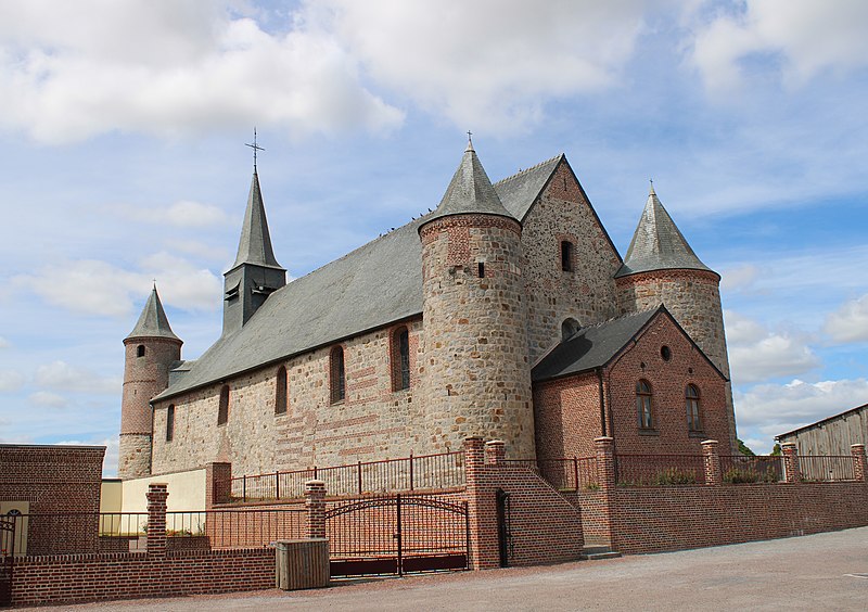 L'église Notre-Dame de La Bouteille est une église fortifiée située dans la commune de La Bouteille, dans le département de l'Aisne en région Hauts-de-France. Elle fait l'objet d'une inscription partielle au titre des monuments historiques par arrêté du 10 mars 1995 ; seules les quatre tourelles d'angle sont inscrites. Les verriers établis par l'abbaye de Foigny en 1517 disposaient d'une chapelle en bois avant la construction de l'édifice. L'église actuelle a été construite en 1547. L'édifice a la forme d'un parallélogramme et est flanqué d'une tour à chacun de ses angles. La quatrième tour n'a été élevée qu'en 1860 ; jusqu'alors un contrefort remplissait sa fonction. Dès l'origine, l'église était couronnée d'une flèche élégante qui subsiste, mais elle est aujourd'hui renfermée dans un clocher extérieur construit vers 1820 par les ingénieurs chargés de dessiner la carte de France. En 1821 ces ingénieurs élevèrent d'abord une flèche de très grande hauteur, qui provoqua des inquiétudes et fut remplacée quelques années plus tard par une flèche plus courte de cinq mètres. Le clocher a ensuite été restitué dans sa forme antérieure à 1821. L'église conserve un calice du XVe siècle provenant de l'abbaye de Foigny. La façade est encadrée par des tours fortifiées et s'ouvre sur un porche ; le chevet est lui aussi bordé de tours. La tour sud de la façade présente des meurtrières et une porte donnant accès à la salle de refuge, et le chevet comporte également une tour sud.