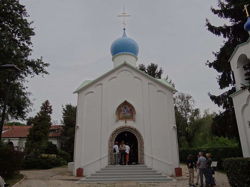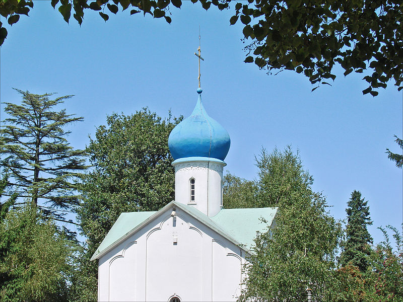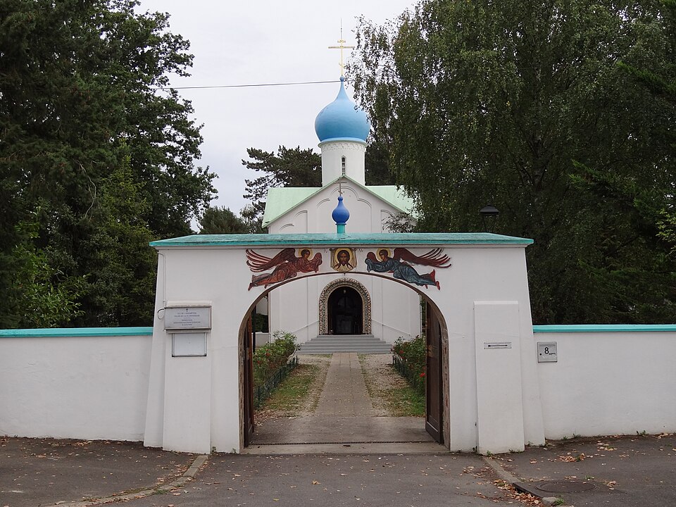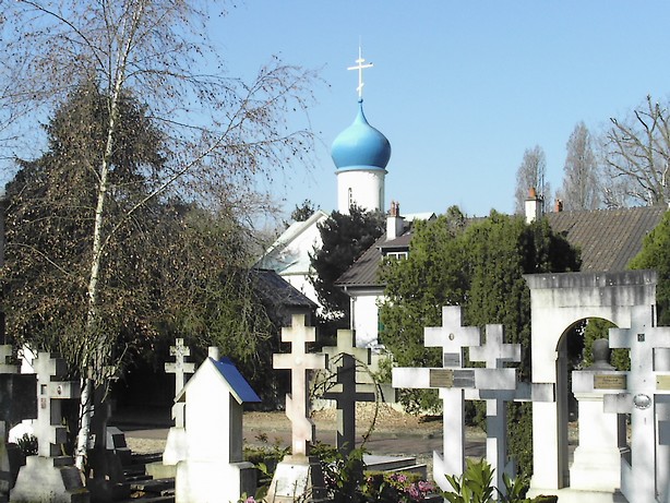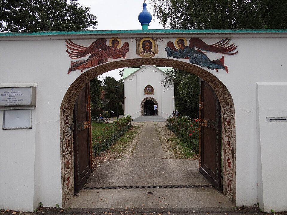 L'église Notre‑Dame‑de‑l'Assomption est un édifice orthodoxe de tradition russe situé dans le cimetière de Liers à Sainte‑Geneviève‑des‑Bois, dans l'Essonne, dédié à la Dormition de la Mère de Dieu. Le cimetière accueille de nombreuses tombes d'émigrés russes depuis 1927, en raison de la proximité d'une maison de retraite fondée à l'initiative de la princesse Véra Kirillovna Mechtcherski. L'église a été construite de 1938 à 1939 d'après les plans de l'architecte et décorateur Albert‑Alexandrovitch Benois, qui a réalisé les fresques en collaboration avec son épouse Marguerite. Benois, né à Saint‑Pétersbourg en 1888 et émigré en France en 1926, a également conçu la chapelle orthodoxe de Saint‑Hilaire‑le‑Grand. La première pierre fut posée le 9 avril 1938 et l'édifice fut consacré le 14 octobre 1939 par le métropolite Euloge; il a été inscrit aux monuments historiques le 1er juillet 1974. L'architecture s'inspire des traditions de Novgorod aux XVe et XVIe siècles et adopte un plan carré, avec la façade orientée à l'ouest et un chevet circulaire flanqué de deux chapelles absidiales, le tout sur des murs enduits de blanc et percés de baies étroites. Le toit, peint en vert pour symboliser la terre, est surmonté d'un clocher à bulbe peint en bleu symbolisant le ciel; un campanile rectangulaire voisin, assorti aux mêmes couleurs, porte six cloches. Le porche est décoré d'une fresque de l'Assomption et le dôme de la nef présente une fresque du Christ bénissant l'assemblée. L'iconostase, en bois peint et comportant les icônes des douze grandes fêtes, est attribuée selon les sources soit à Fedorov, soit à l'ingénieur Grékoff. Sur la table des défunts repose une plaque à la mémoire de trente mille cosaques rapatriés à Lienz le 1er juin 1945 et livrés aux autorités soviétiques, selon les informations consignées. La crypte accueille les tombeaux des évêques du diocèse orthodoxe des paroisses de tradition russe en Europe occidentale (Patriarcat œcuménique), ainsi que ceux d'Albert Benois, de son épouse Marguerite et de plusieurs bienfaiteurs, dont Vladimir Nikolaïevitch Kokovtsov. L'église se trouve en partie dans le bois des Troux, rue Léo‑Lagrange, à proximité du carré réservé aux sépultures russes.
