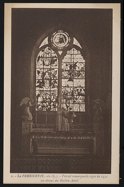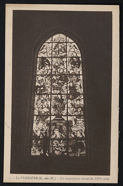 L'église paroissiale Notre‑Dame, située à La Ferrière dans les Côtes‑d'Armor (Bretagne), résulte de plusieurs campagnes de construction et de restauration. Elle présente la forme d'une croix latine dissymétrique, avec un transept nord doublé d'une chapelle, et une nef précédée d'un clocher carré surmonté d'une flèche octogonale. La première mention de l'édifice remonte au début du XIIe siècle ; il a été réédifié au milieu du XVIe siècle en conservant quelques vestiges du XIVe siècle. Plusieurs agrandissements et reconstructions ont ensuite eu lieu, notamment aux XVIIIe et XIXe siècles. Parmi les éléments anciens figurent le portail ouest du XIVe siècle, le portail méridional et le fenestrage du XVe siècle ainsi qu'une croix monumentale du XVe siècle. La chapelle nord est attribuée, selon les sources, au XIVe ou au XVIe siècle ; on relève aussi des sablières du XVe siècle portant des armoiries (Rohan et mi‑parti Rohan et Bretagne) et une porte sud du XVe siècle. Le clocher porte la date de 1767 et intègre une porte du XIVe siècle ; la nef sud est datée de 1770. Le chœur et une grande partie du transept ont été reconstruits en 1899 par Louis Desbois, maçon. L'église est inscrite au titre des monuments historiques par arrêté du 6 avril 2007.