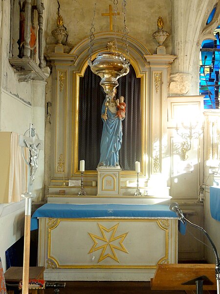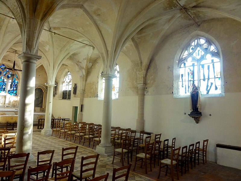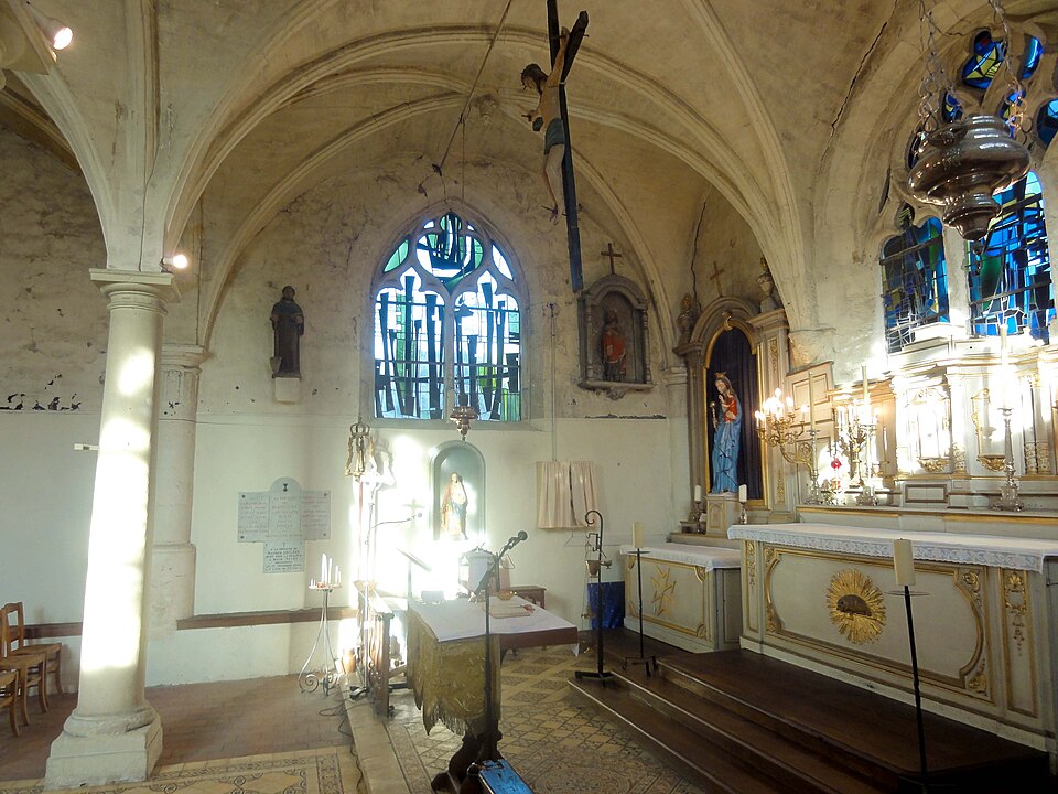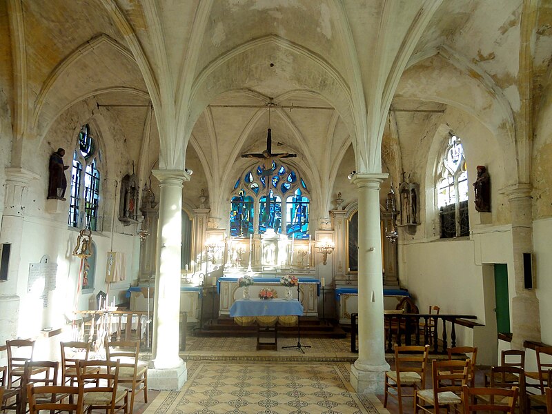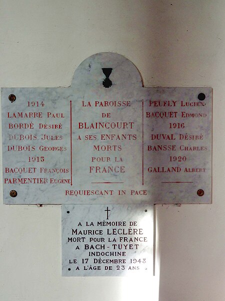L'église Notre‑Dame‑de‑la‑Nativité se dresse au centre du village de Blaincourt‑lès‑Précy (Oise), à l'angle de la rue de la Mairie et de plusieurs voies communales, et reste visible de tous côtés grâce à son dégagement. L'édifice, de plan résolument rectangulaire, présente un caractère simple et homogène et s'inscrit dans une esthétique gothique flamboyante. L'aspect extérieur est sobre et dépourvu des riches ornements flamboyants habituels, mais les réseaux des fenêtres témoignent d'un dessin typique de la période flamboyante. L'ensemble intérieur, original par son agencement, se compose d'une nef et de deux collatéraux de hauteur identique, la nef n'étant que légèrement plus large, ce qui crée un effet proche d'une crypte gothique tout en bénéficiant d'un éclairage abondant. Les travées sont barlongues dans le sens longitudinal et l'ensemble est voûté d'ogives dont les nervures, fines et élégantes, sont remarquables. Les colonnes de la nef, peintes autrefois, portent des traces d'une taille difficile à discerner ; les piliers, anciens, paraissent avoir été reprofilés au siècle dernier. Le remplage des baies latérales répond au même dessin flamboyant à deux lancettes, tandis que la baie du chevet présente un réseau plus complexe et caractéristique de l'apogée du style. Les vitraux anciens, détruits pendant la Seconde Guerre mondiale, ont été remplacés par des verrières abstraites. Le portail occidental est précédé d'un porche dont le toit galbé appartient sans doute à un ajout postérieur et dont le tympan est orné d'une Pietà placée sur l'entablement. Le clocher latéral, dont la première pierre porte la date de 1782, s'appuie sans contreforts mais avec des pilastres en pierre de taille et présente un étage de beffroi percé d'ouvertures en plein cintre. L'appareil des murs associe moellons et quelques éléments en pierre de taille pour les pourtours des baies et les contreforts ; le pignon occidental est percé d'un oculus aujourd'hui bouché. Sur le plan historique, la paroisse de Blaincourt‑lès‑Précy fut longtemps un vicariat de la paroisse voisine de Précy‑sur‑Oise et ne fut détachée qu'au XVIIIe siècle ; la cure dépendait du prieuré de Saint‑Leu‑d'Esserent. La datation de l'édifice reste discutée : le dessin des baies évoque la fin du XVe siècle tandis que l'homogénéité de l'ensemble et certaines sources suggèrent une construction au milieu du XVIe siècle, les voûtes pouvant avoir été lancées un peu plus tard. À la Révolution, l'église voisine de Bonqueval, plus ancienne, fut vendue comme bien national et plusieurs statues qui en proviennent ornent aujourd'hui Notre‑Dame. L'église abrite un mobilier notable comprenant une Pietà en pierre polychrome, un Christ en croix et plusieurs statues anciennes de saints, ainsi qu'un maître‑autel en bois verni et partiellement doré du XVIIIe siècle ; certains de ces éléments ont été signalés comme classés par le curé local mais ne figurent pas dans la base Palissy. L'édifice a été inscrit au titre des monuments historiques par arrêté du 18 octobre 1971 et n'a pas bénéficié d'une restauration intérieure depuis cette inscription. Aujourd'hui, la desserte religieuse s'inscrit dans la paroisse Saint‑Louis de Précy‑sur‑Oise.
