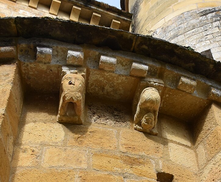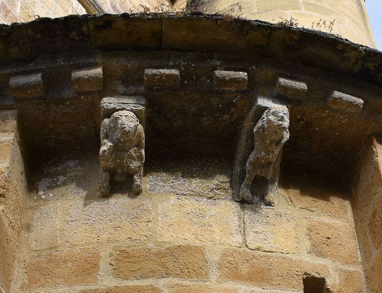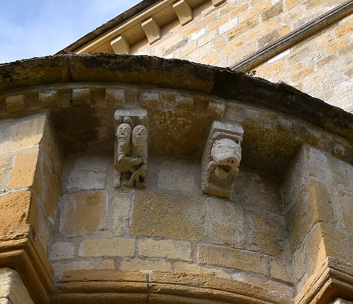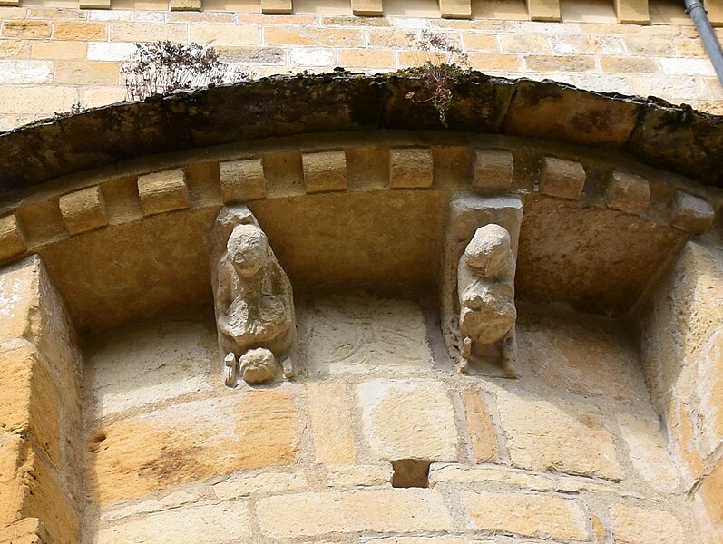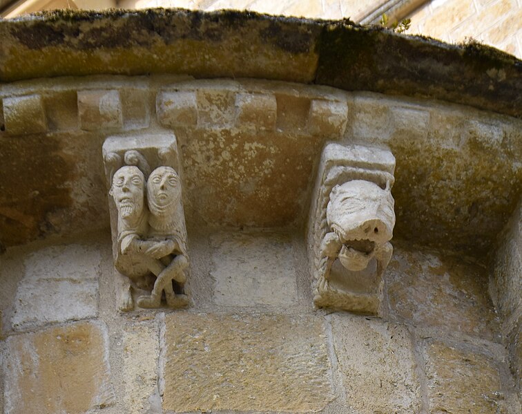 L'intérêt majeur de l'église réside dans son ensemble sculpté : quarante‑quatre chapiteaux et dix‑huit modillons romans dont les sujets figurés sont plus nombreux que les décors géométriques ou végétaux. Parmi ces motifs, le chevet offre un programme iconographique interprété comme une illustration de la victoire du Christ ressuscité sur le mal et le péché, avec des chapiteaux représentant la Faute originelle, l'Avare, la Résurrection de Lazare, l'Adoration des Mages, Daniel dans la fosse aux lions ou encore un dompteur tenant en laisse deux singes.