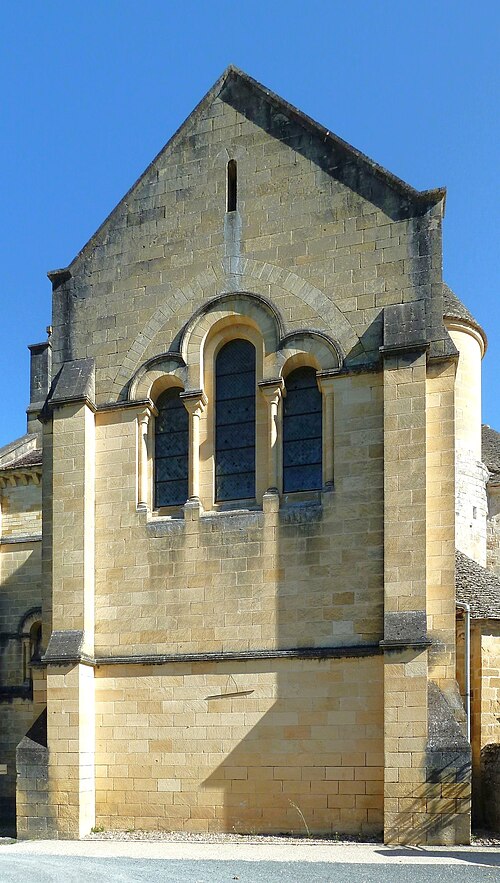 L'église Notre‑Dame de la Nativité de Cénac, située à Cénac‑et‑Saint‑Julien dans le département de la Dordogne, conserve des éléments remontant au XIIe siècle. De cette époque subsistent le chœur, deux absidioles et le transept ; la nef et ses chapelles ont été détruites et en grande partie reconstruites ou abrégées au cours des siècles. Le chœur présente des colonnes aux chapiteaux richement sculptés qui supportent une série d'arcatures surmontées par la voûte de l'abside. À la croisée du transept s'élevait autrefois une tour carrée éclairée par des fenêtres à plein cintre ; il n'en subsiste que des vestiges après des restaurations du XIVe siècle. Les bras du transept étaient autrefois voûtés en berceau avant d'être remaniés.