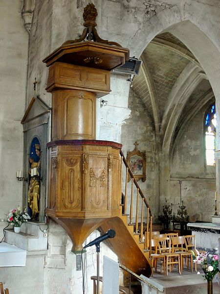 L’église Notre-Dame de la Nativité, paroissiale, se situe à La Neuville-en-Hez (Oise) et a été inscrite au titre des monuments historiques le 2 avril 1927. Sa partie la plus ancienne est le clocher roman, daté d’environ 1140, auquel correspondent les grandes arcades de la nef qui montrent un style de transition vers le gothique. L’intérieur est largement marqué par le gothique flamboyant : le chœur à abside à pans coupés et ses bas-côtés ont été réalisés à la fin du XVe et au début du XVIe siècle et la base du clocher a été remaniée dans le même style. La nef et les bas-côtés ont reçu des voûtements d’ogives dans le style flamboyant au milieu du XVIIIe siècle, tandis que la façade occidentale, de style classique ou jésuite, a été achevée en 1790. Selon des traditions anciennes reprises par Louis Graves, l’église aurait été fondée en 1187 par le comte Raoul de Clermont, mais l’analyse architecturale du clocher a conduit Eugène Müller à proposer une datation plus ancienne, vers 1140. À l’origine dépendante de la paroisse de Courlieu, la cure fut transférée à la nouvelle église sous l’impulsion des comtes de Clermont, modifications entérinées par des bulles de 1249, 1250 et 1269, et la cure relevait alors du chapitre de Gerberoy qui percevait une part des dîmes et offrandes. Par testament de 1251, Jeanne, veuve de Gaucher de Châtillon, accorda au curé l’usage du bois du vert bois dans la forêt de Hez-Froidmont, monopole confirmé et réglementé par Saint-Louis en 1259 puis ultérieurement limité. En 1419 les chanoines de Gerberoy furent accueillis provisoirement à La Neuville lorsque leurs bâtiments furent détruits, avant de retourner à Gerberoy en 1423. L’église primitive du XIIe siècle comprenait une nef non voûtée de trois travées, un clocher au-dessus probable de la croisée et un chœur désormais inconnu ; des remaniements aux XIIe–XIIIe siècles et au XIVe siècle ont transformé les arcatures et les croisillons, puis les importantes campagnes des XVe–XVIe siècles ont abouti au chœur actuel. Le voûtement flamboyant de la nef, réalisé au XVIIIe siècle, a respecté les grandes arcades anciennes tout en adjoignant des piliers ondulés et des culs-de-lampe, expression d’une volonté locale d’unifier l’aspect de la nef sur le modèle du chœur. L’église suit un plan cruciforme inscrit dans un rectangle : le vaisseau central comporte six travées barlongues se terminant par une abside à cinq pans, les bas-côtés parallèles en comptent également six et sont clos par des chevets plats ; la quatrième travée fait office de base du clocher et abrite le maître-autel. Le transept a été remanié à plusieurs reprises, les croisillons ayant été assimilés aux bas-côtés et les voûtes remplacées ; la chaire à prêcher est adossée à la pile nord-est du clocher. Le chœur, entièrement homogène stylistiquement, se distingue par des fenêtres au réseau flamboyant, des voûtes à liernes et tiercerons et des boiseries de style Louis XVI en soubassement des fenêtres ; la baie axiale conserve un vitrail des frères Leprince représentant la Crucifixion. Extérieurement, la façade occidentale s’organise en deux registres et présente au-dessus du portail une niche abritant une Vierge à l’Enfant en pierre d’au moins le XIVe siècle ; la grande fenêtre en plein cintre visible depuis l’extérieur masque en partie la rosace réelle de la nef. Le clocher, de plan carré, comporte un étage de beffroi percé de baies en plein cintre subdivisées en deux arcades et est coiffé aujourd’hui d’un toit à la hache en ardoise ; l’étage de beffroi reste l’élément roman le mieux conservé. L’église contient un mobilier remarquable, en grande partie antérieur à la Révolution et dont plusieurs pièces sont classées au titre des objets : une Vierge à l’Enfant en pierre du XIVe siècle dans la niche du portail, des fonts baptismaux octogonaux du premier quart du XVIe siècle accompagnés d’une petite piscine, des verrières figurées de la première moitié du XVIe siècle attribuées à l’atelier des frères Leprince, des peintures dont une Sainte Famille du XVIe siècle liée à l’entourage d’Orazio Samacchini, une dalle funéraire gravée de Jean Brassart (1533) et d’autres plaques, une paire d’autel-tombeaux des XIIe et XVe siècles, une Vierge de la Garde en bois peint du XVIe siècle, un groupe de Pitié et un crucifix du XVIe siècle, ainsi que divers éléments du XVIIIe siècle (lambris, crédences, lutrin). Aujourd’hui l’église dépend du diocèse de Beauvais et fait partie de la paroisse Saint-Louis de Bresles ; elle n’accueille plus de célébrations eucharistiques régulières en raison de l’absence de prêtre résident.