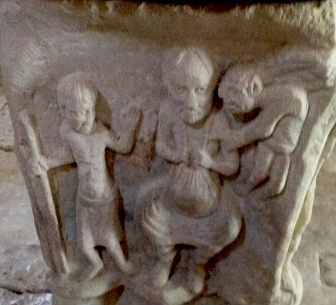 À l'intérieur, la cuve du bénitier, signée Dumas 1735, repose sur un bloc sculpté de remploi représentant sur ses quatre faces des scènes de l'enfance du Christ — Annonciation, Nativité et Fuite en Égypte — ainsi que Lazare et le mauvais riche, l'avare étant figuré avec une bourse au cou. Un chapiteau roman remployé sert de fonts baptismaux et présente lui aussi des scènes religieuses sculptées sur ses quatre faces, en écho au décor du bénitier. Les vitraux de l'église ont été restaurés en 2010. La paroisse est peut‑être mentionnée dès le Xe siècle dans le cartulaire de Tulle, et le curé de Lasvaux apparaît dans un acte de 1170 du cartulaire d'Obazine.