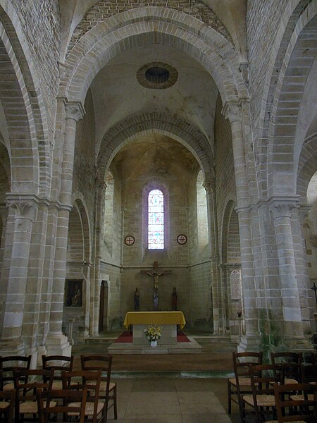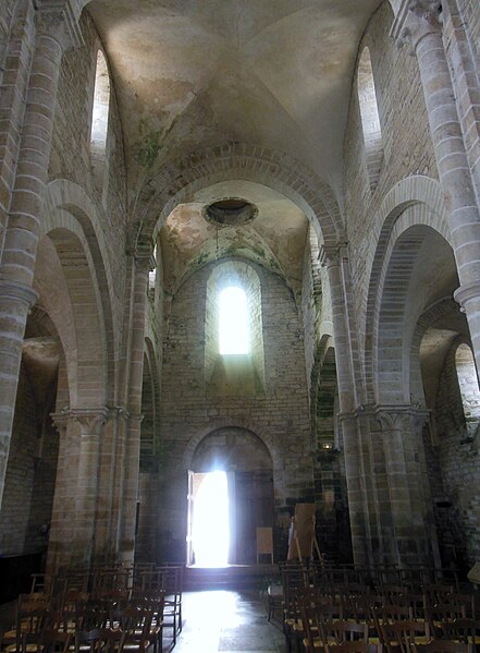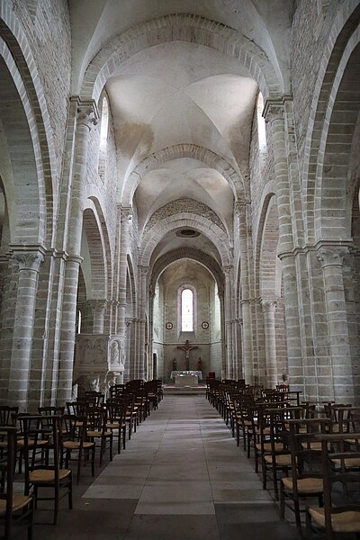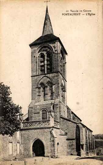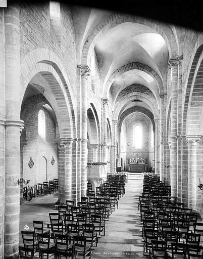 L'église de Pontaubert, située au centre du village de Pontaubert dans l'Yonne, a été construite aux XIIe et XIIIe siècles par les Hospitaliers de Saint-Jean de Jérusalem, devenus l'Ordre de Malte. Classée au titre des monuments historiques par la liste de 1862, elle est en grande partie datée de la fin du XIIe et du début du XIIIe siècle. Le plan est simple et sans transept : une nef de quatre travées flanquée de bas-côtés, une travée de chœur un peu plus basse elle aussi avec bas-côtés, et une abside à trois pans. L'élévation, typiquement bourguignonne, est à deux étages : de grandes arcades brisées à double rouleau reposent sur des piliers cruciformes à colonnes engagées et sont surmontées de hautes fenêtres qui inondent la nef de lumière. Les voûtes d'arêtes sont soutenues par de forts doubleaux de profil brisé, présents également dans les bas-côtés. Les doubleaux et arcades à double rouleau se retrouvent dans la première travée portant le clocher et dans la travée correspondant au transept, qui reproduit l'architecture de la nef en étant toutefois un peu plus basse. La présence d'un oculus laisse penser qu'un clocher avait d'abord été prévu en cet endroit avant d'être déplacé en façade, solution d'inspiration gothique. L'abside trapézoïdale, voûtée en arête et percée de trois hautes baies, est caractéristique des ordres militaires. Les chapiteaux de la nef montrent une ornementation discrète : larges feuilles d'eau pour la partie romane et crochets pour la partie plus récente.
