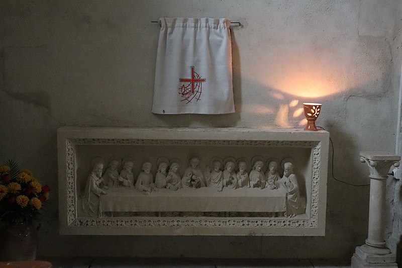 Après le classement de 1862, l'église fut restaurée en 1873 par l'abbé Minard, qui commanda un important programme de sculpture à Jean Guillaumet ; l'autel monumental et la grille de communion ont été déposés, mais subsistent la chaire et la balustrade du porche avec sa curieuse gargouille féminine. Aux XVIIIe siècle chaque pilier portait un autel et un jubé en bois pouvait accueillir de la musique ; aujourd'hui sont conservés un Christ en croix et deux statuettes en bois peint (Vierge et saint Jean, de facture rustique du XVIIe siècle) placées sur le mur du chœur. Plusieurs croix de consécration anciennes se remarquent sur les piliers. Le crépi a été refait au XIXe siècle en ocre brun avec faux joints blancs ; certaines parties ont ensuite été dégagées pour laisser apparaître la pierre, selon la mode des années 1960. La cuve baptismale, autrefois à l'entrée, a été rapprochée du chœur par l'abbé Junot après le concile Vatican II. La statuaire déposée constitue le principal trésor : visible sur place, une Vierge assise à l'Enfant du XIIe siècle, provenant de la chapelle templière du Saulce d'Island, est en calcaire et semble l'œuvre de plusieurs mains — l'ensemble est assez rustique tandis que le visage et les cheveux de la Vierge sont d'une facture plus fine, digne de la sculpture de Vézelay. Parmi les autres statues figurent une Sainte Barbe et un Saint Cyr. Un tombeau en calcaire sculpté en bâtière, appuyé au mur nord, porte une inscription latine évoquant Guy et Geoffroy ; il pourrait s'agir de Guy d'Autun, seigneur de Domecy, qui fit un don à la commanderie pour le repos de son âme en 1251. D'autres pierres tombales des XVIIe et XVIIIe siècles subsistent au sol malgré un dallage refait au XIXe siècle. Les vitraux, le plus souvent des grisailles, comprennent au moins une fenêtre qui paraît remonter au XVe siècle ; les verrières du chœur datent de la restauration du XIXe siècle et la verrière centrale porte discrètement les armes d'un donateur.