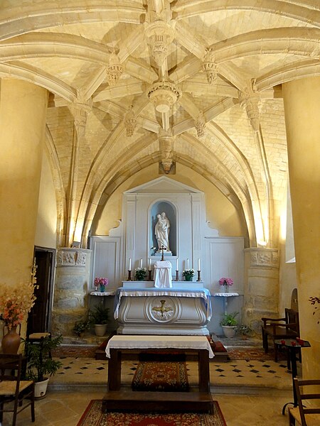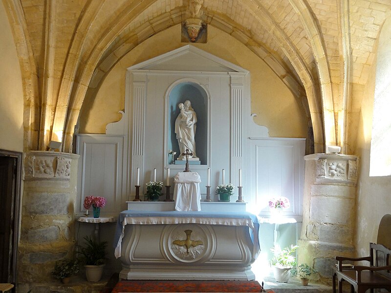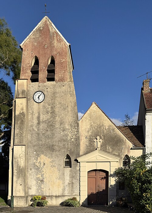 L'église Notre‑Dame‑de‑la‑Nativité se situe au carrefour central de Villaines‑sous‑Bois, rue d'Attainville, dans le Val‑d'Oise, en Île‑de‑France. La paroisse est attestée dès le milieu du XIIIe siècle ; seul le clocher pourrait remonter à cette époque, ainsi que peut‑être les assises basses de certains murs. Le chœur, reconstruit dans la seconde moitié du XVIe siècle, associe des traits du gothique flamboyant — profil des nervures et arcs brisés — à des motifs de la Renaissance, visibles dans les clés pendantes et les chapiteaux sculptés. Il se compose d'une unique travée carrée, très basse mais d'une minutie architecturale inattendue pour une petite église rurale. La nef, simple salle rectangulaire au plafond plat d'une capacité d'environ soixante fidèles, a pris sa forme actuelle au XVIIIe siècle. L'édifice, bâti en moellons enduits, présente un clocher en bâtière intégré à la façade occidentale ; son beffroi s'ouvre par deux baies en tiers‑point sur chaque face et la base du clocher sert de débarras et contient l'échelle d'accès. Le portail occidental en anse de panier, à deux vantaux de bois, est encadré de bossages et de pilastres soutenant un fronton triangulaire mouluré orné d'une croix pattée ; l'intérieur du percement montre un linteau droit et des pierres de taille mises en évidence. La façade donne sur un petit parvis ; l'élévation septentrionale regarde l'ancien cimetière, aujourd'hui jardin public, qui masque partiellement l'église, tandis que le chevet et la face sud sont enclavés dans une propriété privée et ne sont pas visibles depuis le domaine public. À l'intérieur, seules la disposition du mobilier, l'ouverture sur le chœur et la forme en arc brisé de deux fenêtres rappellent la fonction religieuse ; ces fenêtres, inégales, ont des huisseries en bois et ont récemment reçu des vitraux polychromes. Un renfoncement dans la nef abrite les fonts baptismaux, taillés dans un bloc calcaire monolithique au profil irrégulier ; leur socle d'origine a été remplacé par un fût octogonal de faible diamètre. Le chœur se réduit, architecturalement, à sa voûte et à ses supports : deux fenêtres dépareillées, des demi‑piliers engagés et des chapiteaux sculptés de motifs Renaissance empruntés aux métopes et aux entablements. Les chapiteaux présentent une mouluration en trois filets et une alternance de consoles en forme d'ailerons et de rosaces composées de quatre feuilles festonnées autour d'un bourgeon. La voûte, dessinée en étoile avec losange central, associe ogives, huit liernes, quatre tiercerons et neuf clés de voûte pendantes décorées ; la clé centrale réunit guirlande, couronne ajourée, disque à denticules et cylindre à volutes, sa partie inférieure ayant été bûchée à la Révolution. Bien que les clés soient en bon état, ogives et liernes se sont fortement déformés : des demi‑piliers supplémentaires ont été bâtis pour prévenir l'effondrement et les formerets semblent partiellement disparus ou recouverts par l'enduit. L'ornementation des nervures comporte des feuilles plates en deux rangs et un cylindre gravé de lignes verticales que Mathieu Lours interprète comme des triglyphes. La paroisse, vraisemblablement détachée de Saint‑Georges de Belloy‑en‑France, est mentionnée dès 1253 par un acte de donation ; le premier curé connu est Jean Terrée en 1384 et, sous l'Ancien Régime, la cure dépendait du doyenné de Montmorency dans le diocèse de Paris. À la Révolution la paroisse fut supprimée, le cimetière déplacé au lieu‑dit Le Paradis et tout le mobilier transféré en l'église Saint‑Georges de Belloy ; plus tard, certaines stalles et une statue de la Vierge furent restituées et l'église reçut l'autel de l'ancienne chapelle du château de Belloy. Villaines n'eut plus de prêtre résident ; des travaux de restauration ont été financés en 1926 par des dons de Jules Dandoy et dirigés par l'abbé Ghys, puis l'édifice a été inscrit aux monuments historiques par arrêté du 9 octobre 1969 et restauré de nouveau par la suite. Depuis 1966 Villaines dépend du diocèse de Pontoise et, par choix du clergé local, les messes sont célébrées selon la forme extraordinaire du rite romain ; une messe dominicale anticipée a lieu chaque samedi à 18 h 30. Le mobilier comprend des stalles anciennes au décor baroque, une porte de sacristie à panneaux sculptés pouvant remonter au XVIIe siècle, un bénitier en forme de coquille et une statue en bois de saint Jacques le Majeur en costume de pèlerin dont la main droite rapportée a été montée à l'envers. La grande dalle funéraire et la plaque commémorative liées à Guillaume de Verthamont, seigneur de Villaines, sont conservées dans la nef ; la plaque, posée par Denise Le Beau, rappelle l'assassinat du seigneur le 28 juillet 1601, et la dalle, partiellement effacée par l'usure, porte une effigie en pied et une inscription en bordure. La cloche en bronze datée de 1701, bénie selon son inscription et baptisée Marie, est classée au titre des objets. L'ensemble, bien conservé après ses restaurations, constitue un exemple intéressant d'une minuscule église paroissiale rurale où se mêlent des caractères tardifs gothiques et renaissants.