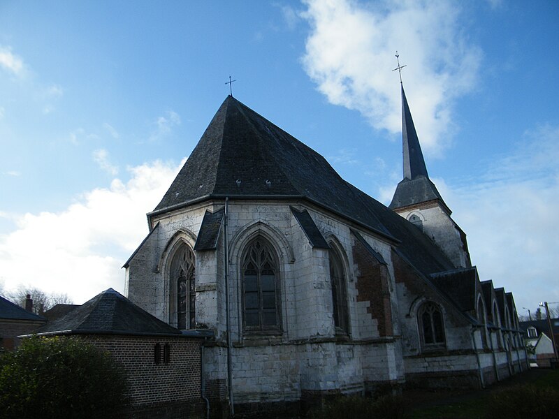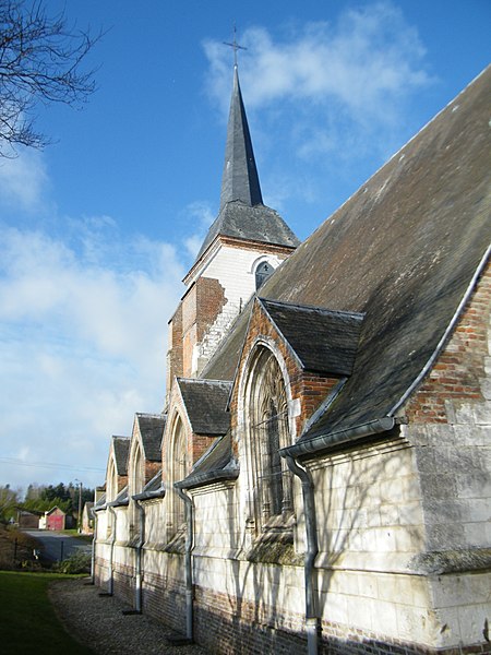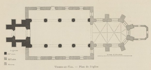 L'église de la Nativité-de-la-Sainte-Vierge de Vismes-au-Val se situe sur la commune de Vismes, dans le sud-ouest du département de la Somme. Elle a été édifiée aux XIIe, XIIIe et XVe siècles et a été classée au titre des monuments historiques par arrêté du 7 février 1920. Victime des combats de 1940 lors de la bataille de France, l'édifice a fait l'objet de réparations après 1945. Construite en pierre calcaire selon un plan basilical, l'église présente une nef et un clocher‑porche du XIIIe siècle tandis que les collatéraux et le chœur, de style gothique flamboyant, datent du XVe siècle. Ces parties gothiques ont été endommagées en 1940. La tour‑clocher, épaulée de puissants contreforts, est couronnée d'une flèche couverte d'ardoise.