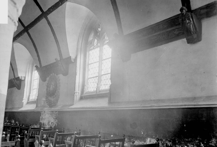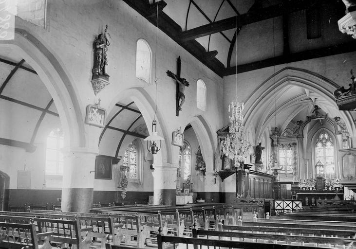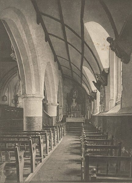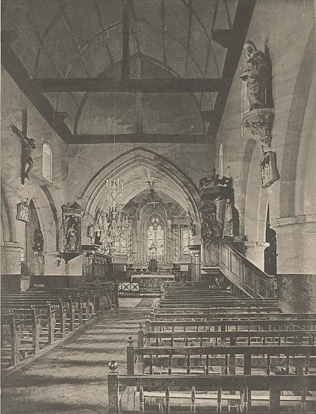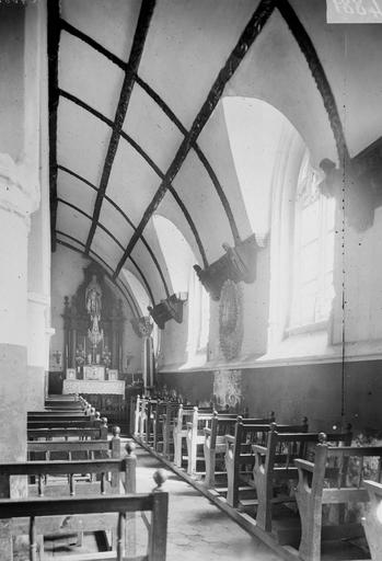 À l'intérieur, les fonts baptismaux du XVe siècle se composent d'une cuve octogonale en plomb décorée d'arcatures, posée sur une table de pierre soutenue par des colonnettes aux chapiteaux à crochets du XIIIe siècle ; ils sont classés au titre des objets depuis le 21 février 1907. Le maître‑autel, daté du XVIIe siècle, est orné de colonnes torses sculptées et porte sur son avant une mise au tombeau ; il est inscrit au titre des objets parmi les monuments historiques. Un autel latéral comporte un retable avec un tableau de la Présentation de Jésus au Temple et une statue de saint Antoine en bois peint et doré des XVIIe‑XVIIIe siècles, classée au titre des objets depuis le 9 mai 1981.