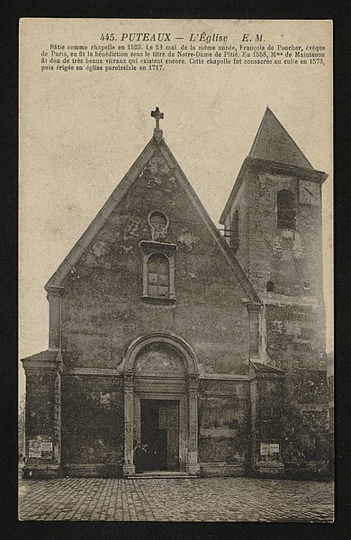 Notre-Dame-de-la-Pitié est une église du diocèse de Nanterre située à Puteaux, dans les Hauts-de-Seine. L'abbé de Saint-Germain-des-Prés décida la construction d'une chapelle à Puteaux en 1509 ; elle fut consacrée en 1523 par l'évêque de Paris François de Poncher et dépendait alors de la paroisse de Suresnes. Transformée en succursale en 1573, elle fut élevée au rang de paroisse en 1717. Au milieu du XVIIe siècle on lui adjoignit un clocher, et l'édifice fit l'objet d'une restauration complète au milieu du XIXe siècle par l'architecte départemental Paul Eugène Lequeux, qui lui donna une nouvelle façade. Abandonnée à partir de 1939, l'église se détériora et fut interdite au culte en 1946 ; les restes du clocher furent abattus en 1954. Menacée de destruction en 1962, elle fit l'objet d'une campagne de restauration engagée à partir de 1975 et classée monument historique le 2 avril 1975 ; elle a été restaurée et rendue au culte en 1985.