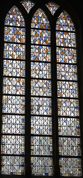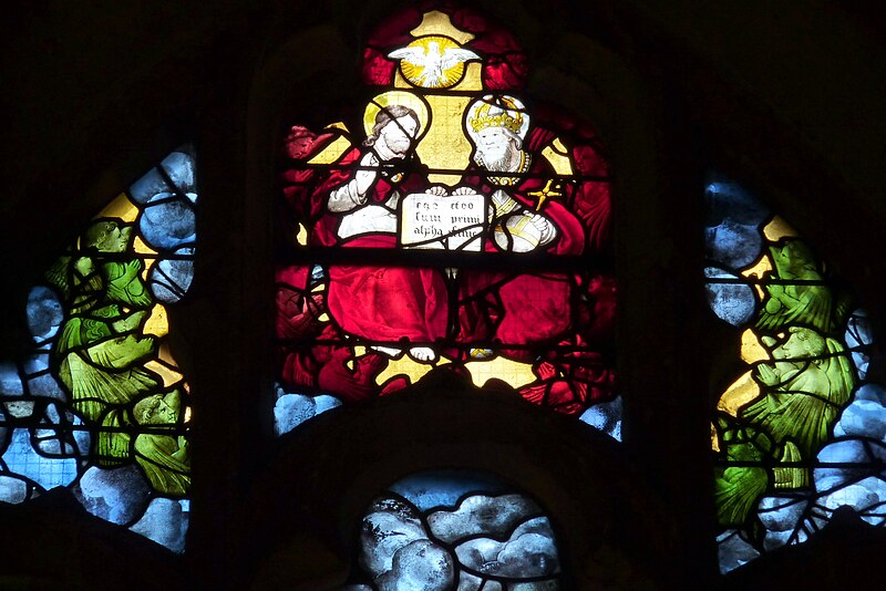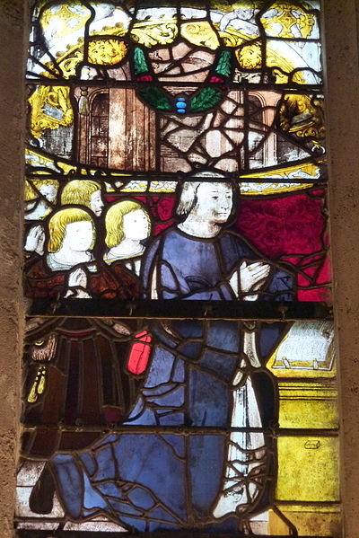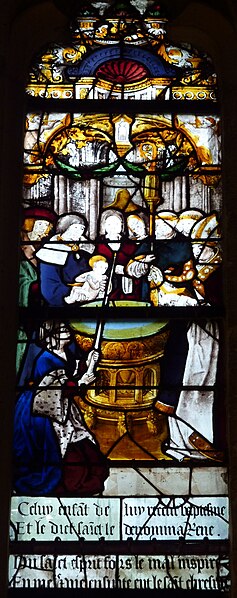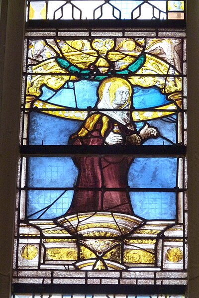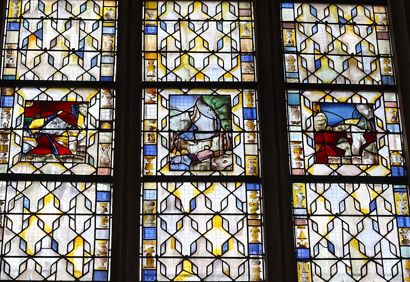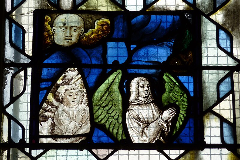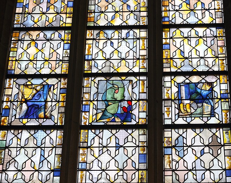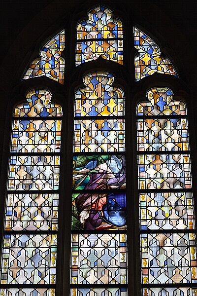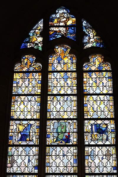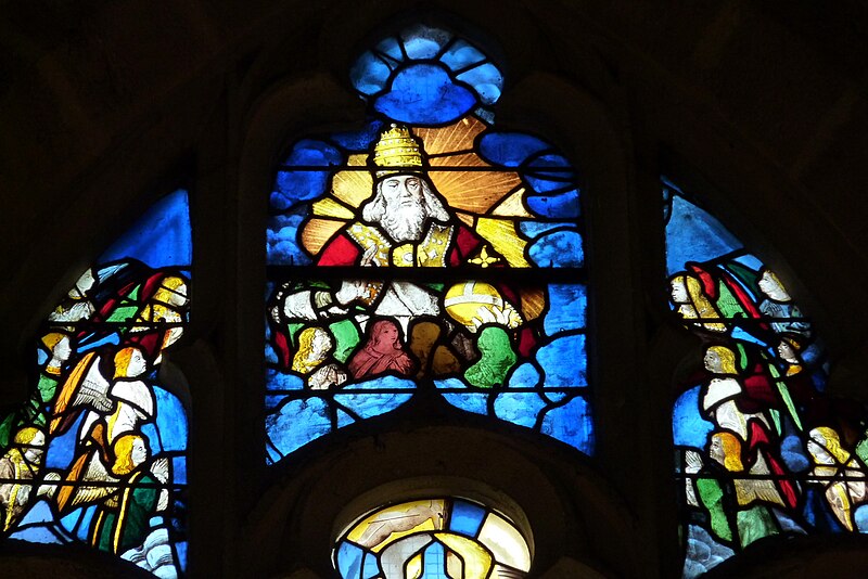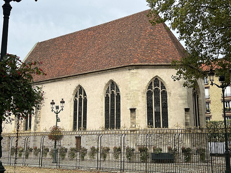 Plusieurs vitraux du XVIe siècle ornant l'église ont été inscrits à l'inventaire des monuments historiques en 1886. Ils représentent notamment la Vie de saint René d'Angers (parfois appelée Vie de saint Maurille), l'Assomption de la Vierge (datée de 1558 et offerte par un boucher de Puteaux), la Pentecôte (attribuée au verrier Jacques Rousseau et éventuellement datable de 1558), ainsi que des compositions comme un Calvaire et une Adoration des bergers. Le vitrail du Baptême du Christ a disparu.