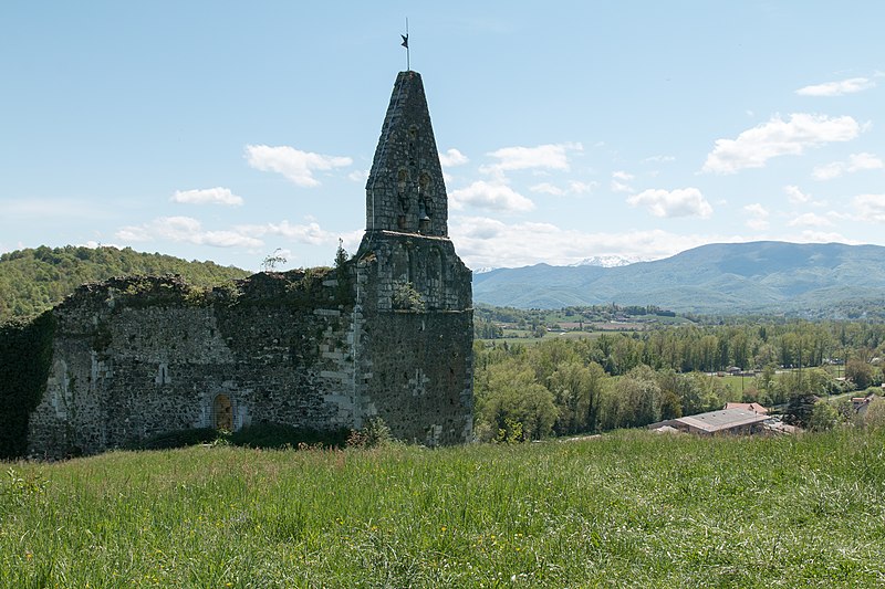 Chapelle du château des comtes de Comminges, située à l'intérieur de l'enceinte, elle a été détruite en même temps que le château. L'édifice présentait une nef rectangulaire et la porte principale s'ouvrait sur le mur sud. Un grand portail gothique avec une archivolte en moulures toriques prolongeant celles des jambages et séparée par un cordon horizontal orné de feuillages faisait office d'entrée ; ce cordon servait de chapiteau à deux colonnettes. À l'intérieur, on relève des chapiteaux et des corbeilles sculptés. Sur la façade orientale subsistait un clocher-arcade roman, couronné d'un galbe aigu et percé de trois arcades en plein cintre disposées en triangle. Au début du XXe siècle, la chapelle conservait encore des traces de peinture. L'occupation du terrain qui porte la chapelle date vraisemblablement du XIVe siècle, mais, selon Anthyme Saint-Paul et Casimir Barrière-Flavy, la motte de Montayan comporte deux phases de construction : un donjon et une première chapelle au XIIe siècle, puis une reprise ou reconstruction du château, des remparts et de l'église au XIVe siècle. Le château est mentionné pour la première fois en 1214 lors de la soumission des comtes de Foix et de Comminges au légat du pape à Narbonne. Le comté de Comminges est passé sous l'autorité de la maison de Foix par le mariage de Marguerite, fille de Pierre Raimond II de Comminges, avec Mathieu de Foix. Après la mort de Mathieu et de son épouse, la châtellenie de Salies revient à la couronne de France à la suite d'un traité conclu en mars 1443 entre Charles VII et Mathieu de Foix ; Viguier de Galard et sa femme Jeanne de Sirgan sont alors chargés de la châtellenie. Aux XVIe siècle et sous Henri III, la fonction est confiée successivement à François de Giffre, sieur de Rachaf, puis à Jean de Gérus ; après 1568, le sieur de Tayan occupe le château, donnant vraisemblablement son nom à la motte, Montayan. Après le XVIe siècle, le manque de sources empêche une description précise des gouverneurs ultérieurs. La chapelle castrale était dédiée à Notre‑Dame de Pitié. Durant la période médiévale, l'accès à la forteresse et à la chapelle se faisait depuis le village par un chemin aboutissant à une porte percée dans les murailles qui conduisait directement à la chapelle. La chapelle figure déjà comme ruinée sur le cadastre de 1825 ; Barrière‑Flavy signale en 1917 la perte de la voûte et le délabrement du donjon, de l'enceinte et de la chapelle, ce qui l'amena à demander sa protection. La chapelle a été inscrite au titre des Monuments historiques le 27 février 1925. Des vues anciennes montrent qu'un couvrement existait au chevet en 1923, probablement pour abriter celui qui sonnait les cloches, et qu'un arbre avait poussé dans la nef ; en 1984 le couvrement et l'arbre avaient disparu. Aujourd'hui, la motte qui porte les vestiges du donjon et de la chapelle est délimitée par la rue du Château au nord, la rue des Comtes du Comminges à l'ouest et la rue de la Vieille‑Église au sud.