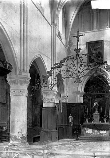 L'église Notre-Dame de Lesges, dans l'Aisne, est classée au titre des monuments historiques en 1911. La travée de chœur et le clocher ont été édifiés durant la première moitié du XIIe siècle ; peu après furent ajoutés les deux bras du transept et leurs niches d'autel. Ces parties sont voûtées d'ogives et le clocher fut alors surélevé d'un étage. Une reconstruction importante de la nef et des bas-côtés au deuxième quart du XIIIe siècle entraîna un nouveau surhaussement du clocher. Sous l'Ancien Régime, la paroisse relevait du diocèse de Soissons (grand archidiaconé, doyenné de Chacrise) ; la cure était à la présentation de l'évêque et la dîme revenait pour deux tiers au prieur de Saint-Remi de Braine et pour un tiers à l'abbaye Saint-Médard de Soissons. Au XIXe siècle, on signalait une chapelle dédiée à la Vierge et une autre à saint Sébastien. L'édifice fut endommagé lors du repli de l'armée allemande à la fin de l'été 1918. Un projet de restauration fut établi en 1920 par l'architecte des Monuments historiques Émile Brunet ; les travaux, conduits par Lucien Sallez de 1923 à 1933, ont principalement porté sur la couverture, le clocher et la maçonnerie du flanc sud. Le chœur et le transept ont ensuite été restaurés par Paul Genuys en 1934.