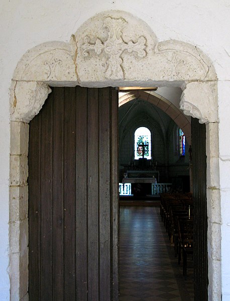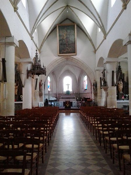 L'intérieur s'organise autour de la nef, du chœur et des combles situés au-dessus du chœur, qui constituent la pièce de refuge. L'accès à la nef nécessite de franchir une seconde porte, plus ancienne et relativement étroite. La nef comprend quatre travées voûtées dont les ogives forment, pour chaque travée, les arêtes d'une pyramide; ses arcades, surbaissées, s'appuient sur des colonnes cylindriques, et les bas-côtés sont couverts de voûtes en stuc très plates. On pénètre dans le chœur par un arc de pierre daté de 1786; le chœur, daté du XVIe siècle, est voûté à liernes et tiercerons et se termine par une abside à cinq pans. L'accès aux combles-refuge se fait par les escaliers des deux tourelles accolées au chevet.