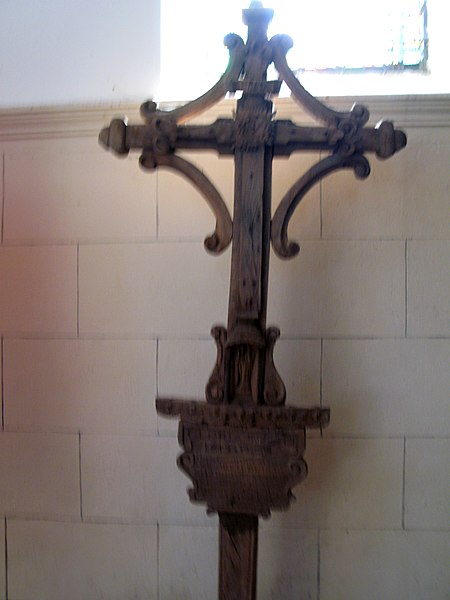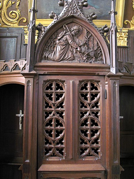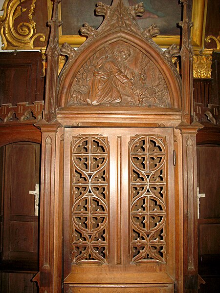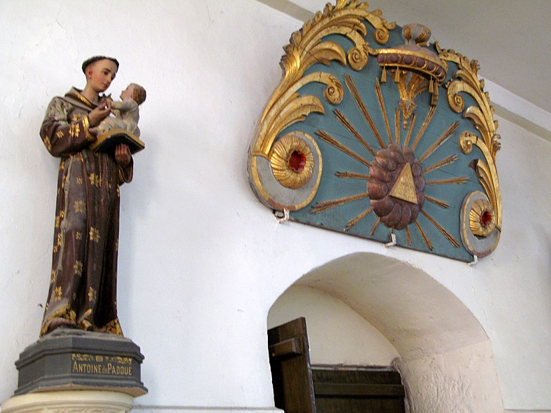 Parmi le mobilier liturgique, on relève une gloire baroque en bois peint du XVIIe siècle, fixée au fond de la nef au-dessus de la porte donnant accès à la salle de garde sous le clocher, un confessional dont le fronton central porte une sculpture du Christ berger, et une ancienne croix en bois munie d'un médaillon sculpté comportant un texte commençant par « Gloria in Excelsis Deo », placée sous une fenêtre. La chaire a disparu; il ne subsiste que l'abat-voix fixé à mi-hauteur d'un pilier. L'ensemble associe des éléments défensifs et des aménagements liturgiques caractéristiques des églises fortifiées de la région.