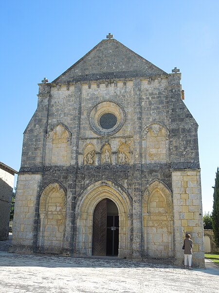 L'église Notre-Dame-de-Lignières, construite à la fin du XIIe siècle, appartenait à l'ancien diocèse de Saintes. L'édifice présente un plan rectangulaire et un chevet droit, et se compose d'une seule nef couverte d'une voûte à nervures dont les colonnes portent des chapiteaux sculptés. Au niveau du transept s'élève une coupole sur pendentifs et un clocher carré. Le chœur, également voûté sur nervures, s'ouvre sur une grande fenêtre du chevet datée du XIIIe siècle; côté nord, un grand arc brisé donne accès à une chapelle voûtée sur nervures. La façade occidentale, attribuée au XIIIe siècle, est ordonnancée par un portail en arc brisé à trois voussures porté par des colonnes rondes; deux pilastres chanfreinés séparent ce portail de portes aveugles et s'élèvent jusqu'au sommet de la façade. Au-dessus du rez-de-chaussée, en retrait, trois arcatures en arc brisé présentent des sculptures représentant une Vierge assise, des bergers guidés par un ange et des rois mages; de chaque côté se voient des arcatures géminées décorées de têtes, d'animaux fantastiques, de pointes de diamant et de crochets. L'édifice a fait l'objet de nombreuses restaurations, notamment au XVe siècle où il a été largement revoûté et complété d'une chapelle au nord; d'autres travaux ont eu lieu en 1835 et 1858, puis selon un projet de Raymond Barbaud et Bauhain vers 1902-1905. Certaines sources évoquent toutefois une datation située entre la fin du XIIe et le XIIIe siècle.
