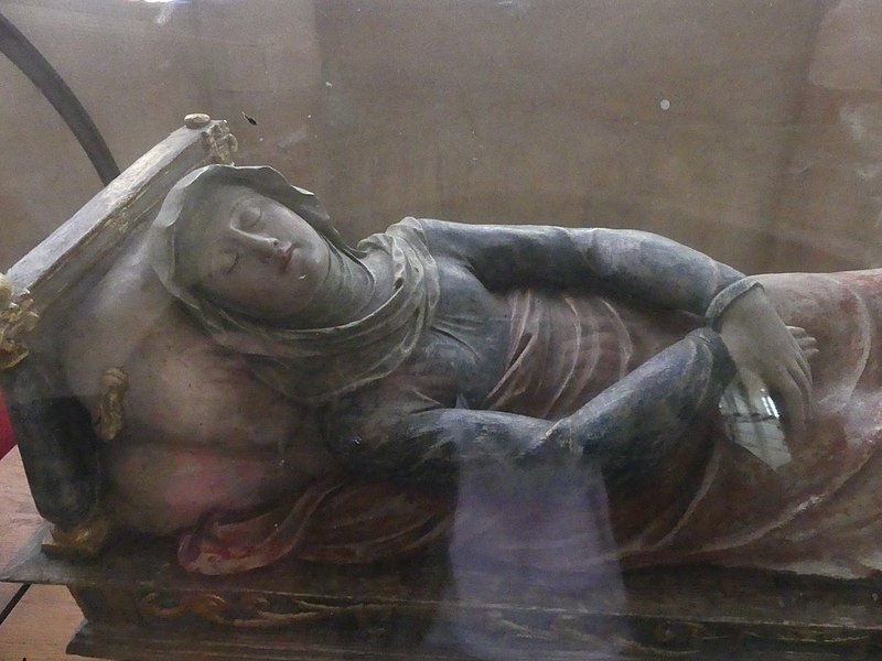 Une terre cuite représentant une Vierge en dormition est exposée dans la chapelle de la Vierge.