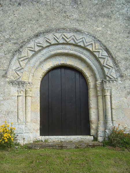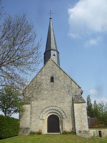La façade ouest de l'église Notre-Dame de Marcilly date du XIIe siècle.