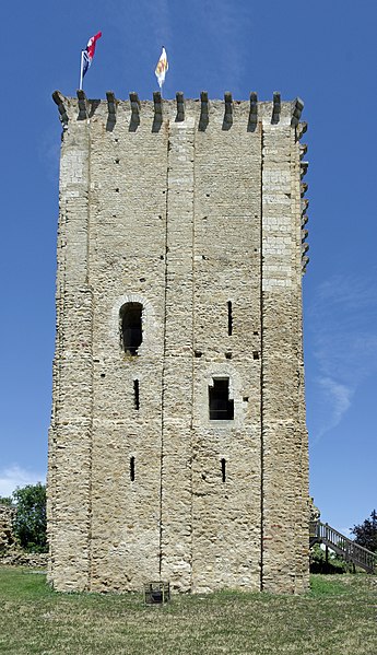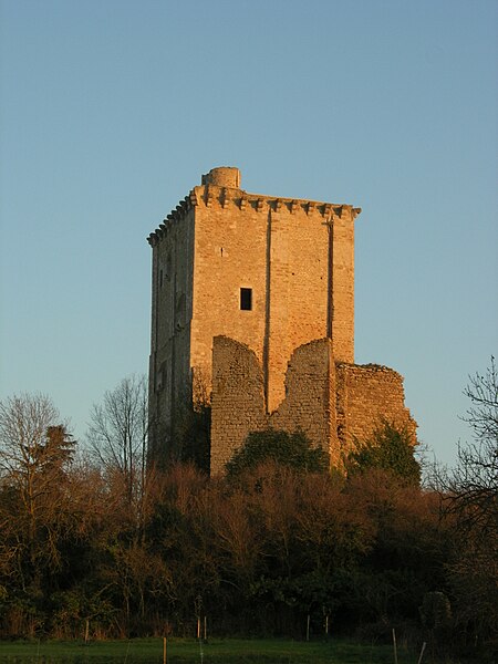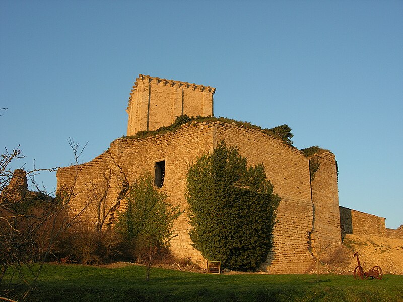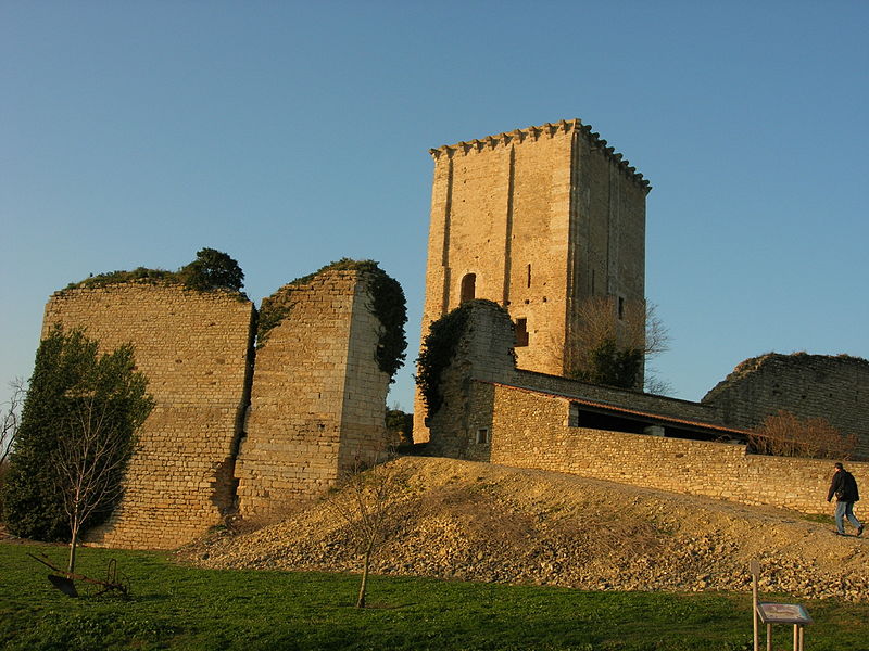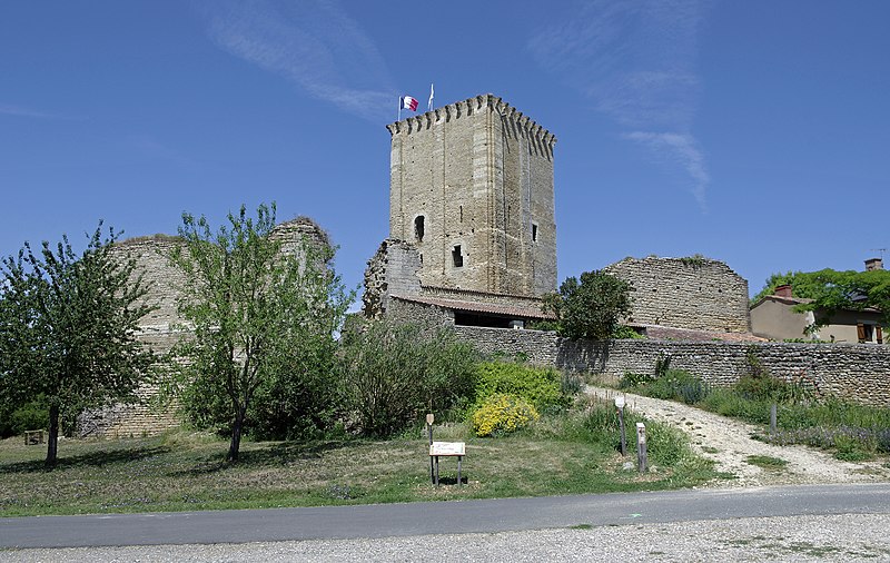 Donjon de l'ancien château : classement par arrêté du 14 juillet 1877 . Vestiges du château (chemise, courtine) et de l'église (cad. AD 68, 69, 72, 73, 76, 77) , ainsi que le sol de ces parcelles pouvant contenir des vestiges archéologiques : inscription par arrêté du 13 février 1995