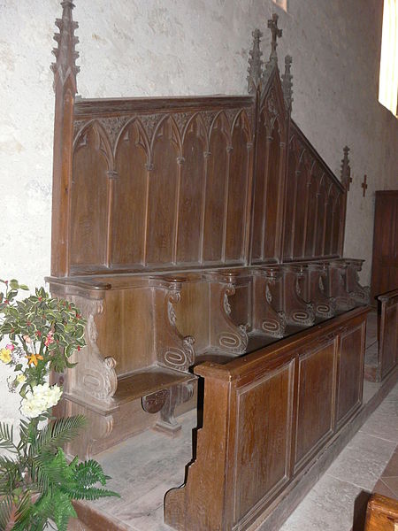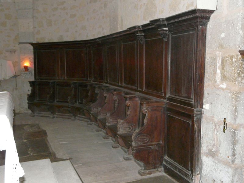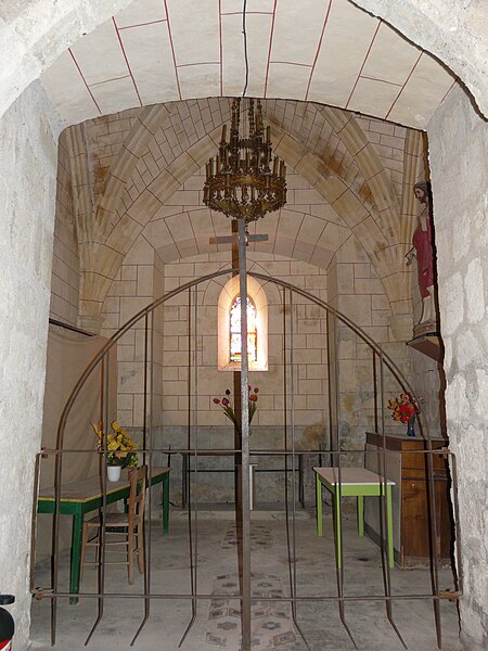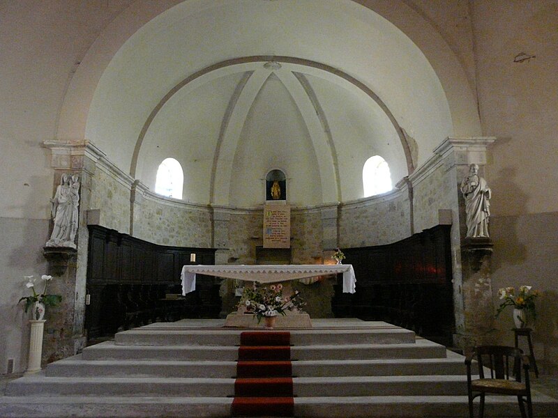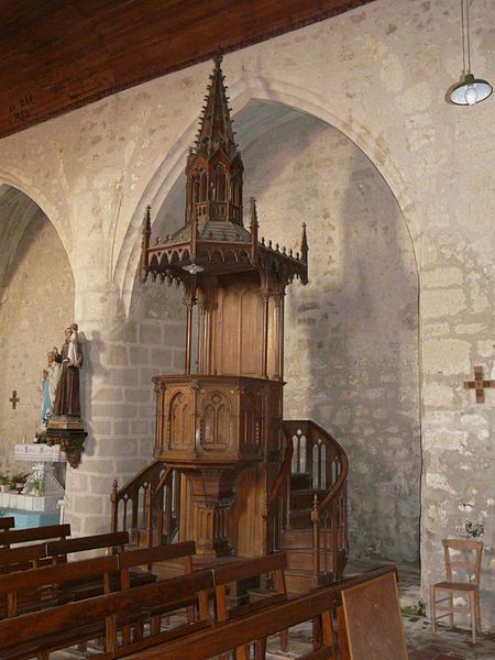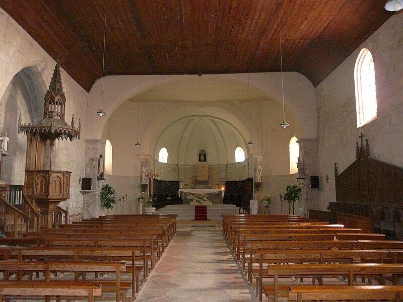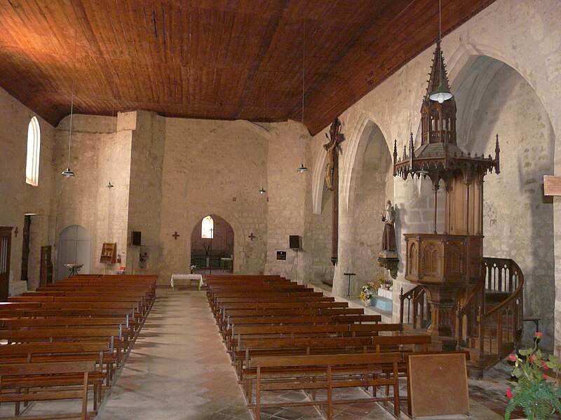 Le mobilier comprend des stalles en bois des XVIIIe et XIXe siècles disposées de part et d'autre du chœur, un banc d'œuvre le long du mur sud de la nef, une chaire en chêne du XIXe siècle à double escalier et un crucifix monumental fixé au mur nord dont la croix mesure cinq mètres. Trois vitraux commémorent les paroisses annexes de Montagnac — Saint‑Jean‑Baptiste de Lareyre et Saint‑Genès, aujourd'hui disparues, et Saint‑Loup encore existante ; le vitrail dédié à Saint‑Jean‑Baptiste est l'œuvre du maître‑verrier Lux Fournier, tandis que les deux autres, réalisés en 1921, proviennent de l'atelier bordelais de Gustave Pierre Dagrant.