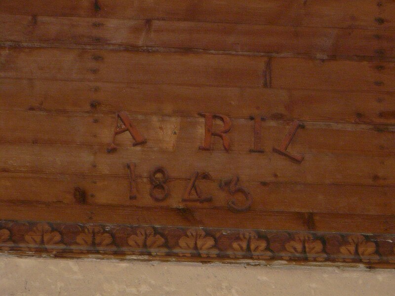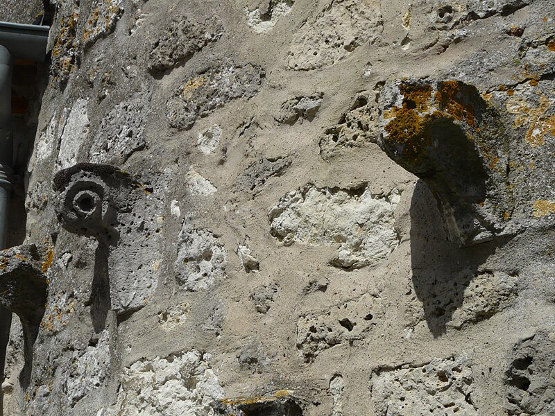 L'église n'est pas orientée strictement est‑ouest mais selon un axe est‑sud‑est / ouest‑nord‑ouest ; elle se compose d'une large nef à plafond en bois, d'un avant‑chœur coiffé d'un plafond en plâtre orné de caissons peints et d'une abside semi‑circulaire. À l'ouest se dresse un clocher‑beffroi carré en pierre de taille, établi sur plan carré avec contreforts d'angle ; son rez‑de‑chaussée est voûté sur croisées d'ogives et un escalier à vis dessert l'étage du beffroi et son balcon. Sous le clocher se trouve la chapelle du baptistère et, du côté nord, la nef est bordée de trois chapelles latérales peu profondes voûtées d'ogives, vestiges de la disposition primitive ; l'ogive du mur ouest suggère qu'il y avait autrefois deux vaisseaux entre des chapelles latérales dont seules celles du nord subsistent. Côté sud, un auvent protège le portail, surmonté de la date gravée 1610.