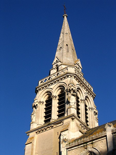 À l'intérieur, les vitraux comprennent notamment un panneau représentant saint Augustin (1857, restauré en 1969) et une représentation de la Sainte Vierge datée de la fin du XIXe siècle, copie de celle de Notre‑Dame‑de‑la‑Couture du Mans. La rosace de la Vierge, également de la fin du XIXe siècle, présente douze quadrilobes entourant un médaillon de la Vierge et des anges. Un vitrail de la montée au Calvaire est daté du XXe siècle et une huile sur toile représente la translation des reliques de sainte Théodora.