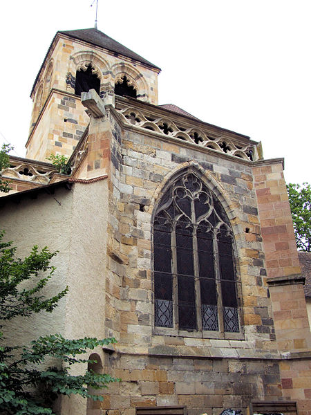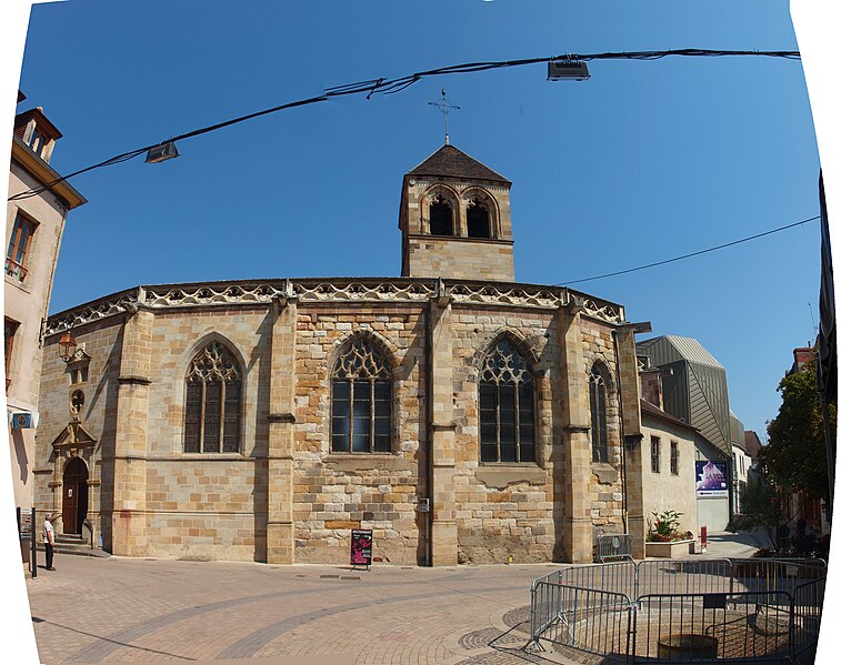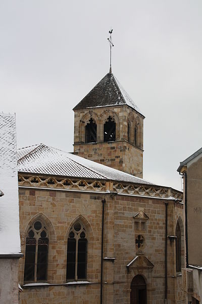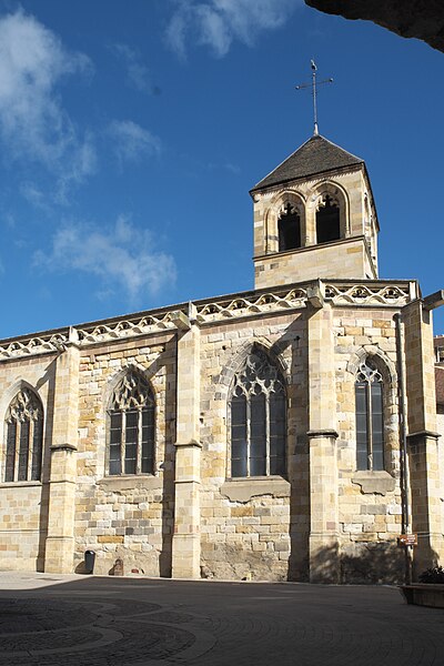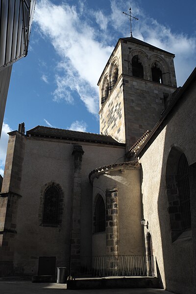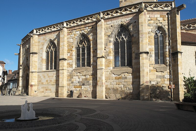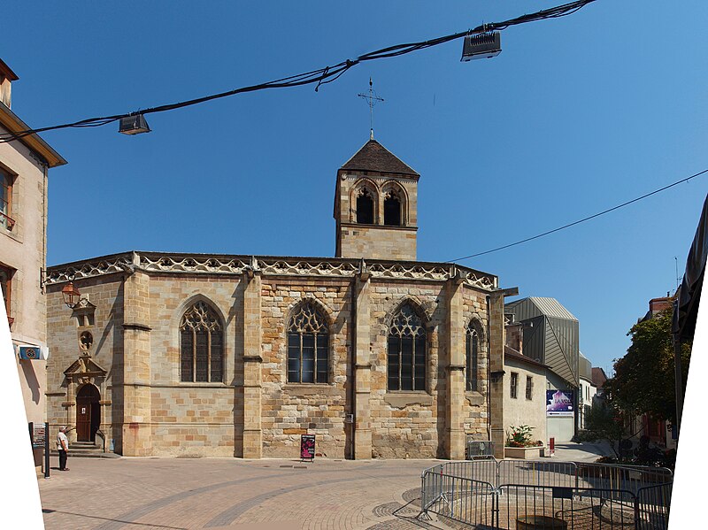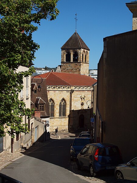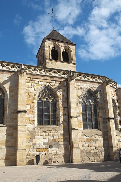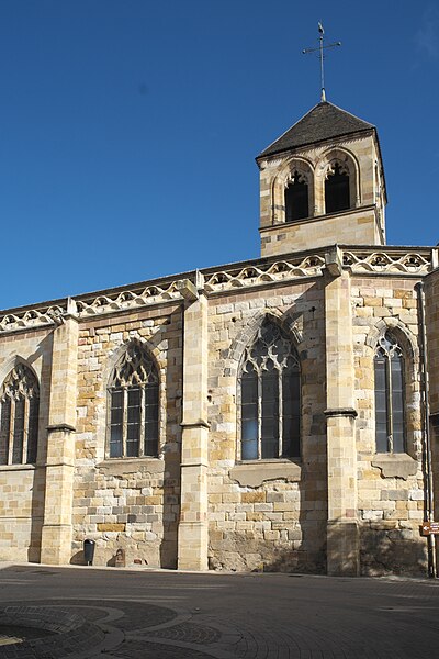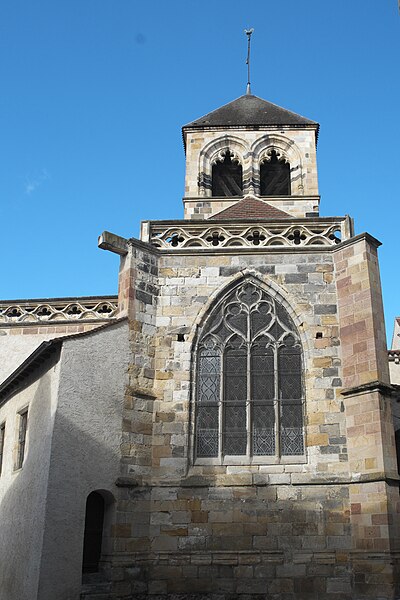 L’église Notre‑Dame de Montluçon, située dans l’Allier, présente un plan irrégulier à deux nefs parallèles et relève principalement de l’architecture gothique. Elle dépendait d’un prieuré‑cure rattaché à l’abbaye bénédictine de Menat et à l’archiprêtré de Narzenne, et fut le siège de la paroisse de la ville haute de Montluçon créée au XIIe siècle ; elle aurait succédé à une église dédiée à saint Ménélée, fondateur de l’abbaye de Menat. D’origine romane pour ses parties les plus anciennes, l’édifice a été largement reconstruit à l’initiative du duc Louis II de Bourbon autour de 1400, puis transformé en plusieurs campagnes aux XVe et XVIe siècles. Subsistent du XIIe siècle l’absidiole nord (chapelle Saint‑Éloi), certains éléments du croisillon nord du transept, deux murs du chœur et les piles nord de la nef. La première phase de reconstruction, à cheval sur la fin du XIVe et le début du XVe siècle, a élevé les bases des piles de la croisée du transept et l’abside de la chapelle de la Vierge. Une seconde campagne, commencée vers 1450, se reconnaît à des armoiries et à des clefs de voûte portant les noms ducs de Bourbon et du prieur Gilles Duboix ; elle a notamment dessiné l’abside au chevet plat et son remplage flamboyant. La troisième phase, à la fin du XVe siècle et au début du XVIe, a permis l’élévation des travées centrales de la nef, la création des chapelles nord percées de baies gothiques moulurées, puis l’achèvement de la travée occidentale avec un pan coupé au sud dans la première décennie du XVIe siècle. Le bas‑côté sud, ainsi que la croisée du transept et le chevet, datent surtout du XVIe siècle. Le collatéral nord n’a pas été entièrement reconstruit : le mur roman a été percé de quatre chapelles étroites voûtées d’ogives à la fin du XVe siècle. Une balustrade ornée de quadrilobes, jadis ponctuée de pinacles et de gargouilles, courait au sommet des murs gouttereaux. Le clocher, de plan carré, a été élevé sur la croisée du chœur ; il est percé sur chaque face d’une baie trilobée encadrée de moulures toriques et a été implanté moins haut que prévu ; il était couvert d’ardoises tandis que la nef avait une couverture en tuiles canal. La flèche de pierre du clocher fut abattue par un orage en 1706 et remplacée par une toiture plus simple. Les portails ouest et sud furent reconstruits en 1622 avec pilastres et frontons abritant des niches, et la porte occidentale comporte une statue de la Vierge à l’Enfant. La chapelle du Rosaire a été refondée et agrandie vers 1611, et la chapelle du Sacré‑Cœur, ancienne salle capitulaire devenue vicairie Sainte‑Madeleine, a été réunie à l’église lors de sa reconstruction en 1660. Une cloche datée de 1511 atteste de l’activité du chantier au début du XVIe siècle. L’église conserve également des œuvres mobilières et des vitraux : une Vierge de Pitié en pierre du milieu du XVe siècle attribuée à Jacques Morel est classée monument historique au titre objet, et l’édifice a gardé des fragments de trois verrières du XVIe siècle — côté nord une Transfiguration de la Vierge, côté sud une scène de sainte Anne instruisant la Vierge entre saint Antoine de Padoue et saint Antoine ermite, ainsi qu’une verrière en deux registres représentant l’Adoration des Bergers (ou la Nativité) et l’Adoration des Mages ; deux verrières du côté sud ont été classées en 1902. L’orgue de tribune, dont l’origine remonte au milieu du XIXe siècle, a été reconstruit en 1892‑1893 par Jean‑Baptiste Ghys, restauré en 2015 et classé au titre objet en 2006. L’ensemble de ces campagnes et aménagements explique la silhouette complexe et le plan contrarié de Notre‑Dame, caractérisés par la coexistence d’éléments romans et d’un vocabulaire gothique flamboyant évoluant entre le XVe et le XVIe siècle. L’église est classée monument historique.