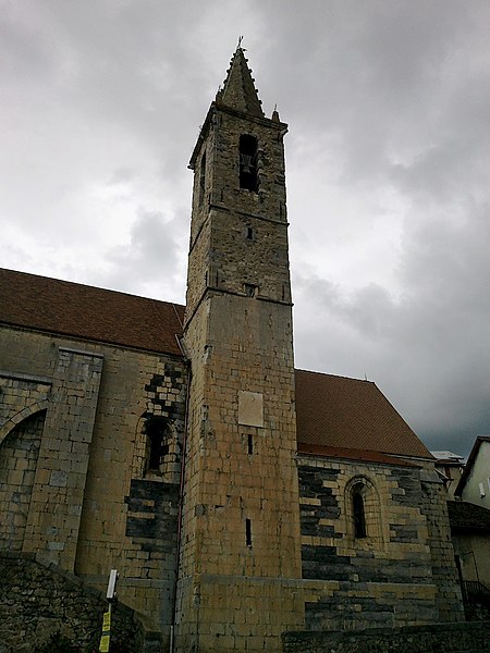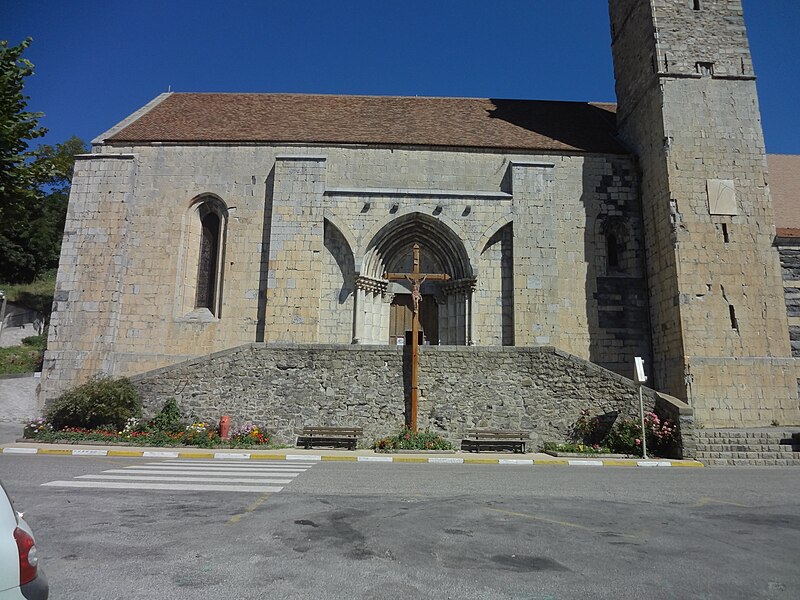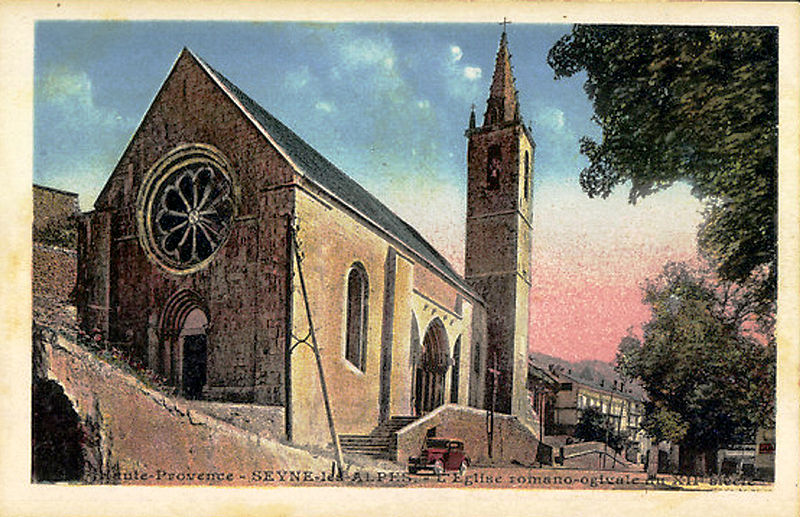 L'église Notre-Dame-de-Nazareth, située à Seyne dans les Alpes-de-Haute-Provence, est de style roman et a globalement conservé son aspect primitif. Sa construction actuelle peut remonter au milieu du XIIe siècle et elle est attribuée légendairement à Charlemagne. La façade occidentale présente une vaste rosace à douze rayons et un cadran solaire composé sur une plaque de marbre datant de 1878. L'ancien porche a disparu, mais le portail à voussures a conservé ses chapiteaux sculptés. La nef, longue de 28 m et haute de 14,5 m, est composée de trois travées voûtées en berceau séparées par des arcs doubleaux à double rouleau. Le chœur, à chevet plat, est lui aussi voûté en berceau, et deux chapelles latérales, disposées avant le chœur, forment un faux transept. Le portail de la façade sud, de style gothique (XIIIe siècle ou début du XIVe siècle), est encadré par deux départs d'arches qui s'appuient sur les contreforts et conserve des vantaux datés de 1631. La flèche du clocher a été refaite après le siège du duc d'Épernon. Des travaux de consolidation, notamment le rejointoiement et la restauration du contrefort sud-ouest, ont été réalisés en 1967. Les chapiteaux sont sculptés de visages humains et de personnages dont les corps sont tordus par les tourments infligés par des diables. Les fonts baptismaux ont quatre mètres de diamètre. L'église est classée monument historique depuis 1862.