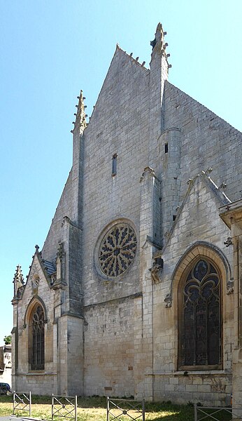 L’église Notre-Dame de Niort, classée monument historique depuis le 16 septembre 1908, présente une longue histoire marquée par des remaniements successifs et des dommages répétés. L’existence d’un lieu de culte dédié à la Vierge est ancienne ; un acte contesté attribue une donation à l’abbaye de Charroux par Charlemagne en 799, et une charte du comte Roger et d’Euphrasie mentionne des biens ecclésiastiques à Niort. En 1050, le pape Léon IX confirma la possession des églises de Saint-Florent et de Sainte-Marie par l’abbaye de Charroux, et le cartulaire de Charroux cite Notre-Dame et son prieuré, demeuré dépendant de l’abbaye jusqu’au XVIIIe siècle. Il ne subsiste rien de l’édifice antérieur. En 1227, l’évêque Jean de Melun ordonna le paiement de redevances par les prieurés relevant de Charroux ; le pape Alexandre IV confirma ensuite l’obligation pour le prieuré Notre-Dame de verser cent livres annuelles. L’historien Briquet signale des réparations en 1386 et 1411. Une inscription au chevet indique le début de la construction de l’église actuelle le 26 mai 1491 par Pierre Sabourin et Jehan Richer ; on pense que le chœur et une partie du transept furent réalisés entre 1491 et 1530. En 1531, les marguilliers passèrent marché avec le maître maçon Mathurin Berthomé pour la construction d’une galerie destinée aux orgues, l’élévation du pignon occidental, des voûtes et piliers ; un différend en 1534 au sujet des contreforts conduisit finalement à l’élévation d’un mur aveugle. Le portail se situe sur la façade nord, et la galerie au-dessus porte l’inscription O mater Dei, memento mei. La date de construction du clocher n’est pas documentée ; une tradition l’attribue au duc de Berry, et des travaux importants en 1550 semblent correspondre à l’achèvement du clocher. Les chapelles latérales, aménagées entre contreforts, furent ajoutées à des dates incertaines, peut‑être avant 1569 ou au XVIIe siècle.