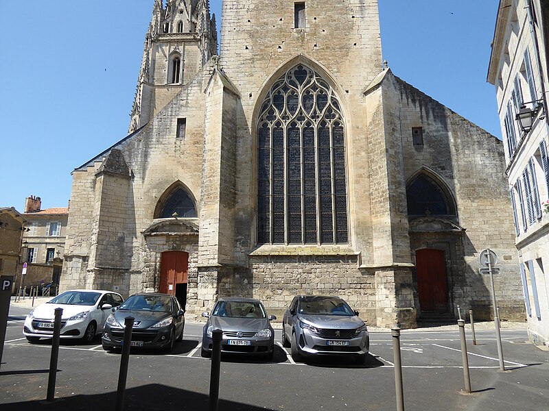 Les guerres de Religion causèrent d’importants dégâts : la ville connut des attaques et des pillages entre 1562 et 1588, le curé Texereau fut massacré en 1568, des biens ecclésiastiques furent vendus en 1569, et l’église fut pillée à diverses reprises ; une vue cavalière de Claude Chastillon vers 1605 montre l’édifice sans toiture mais avec clocher intact. Le culte catholique fut rétabli en 1593 et, après l’édit de Nantes, l’église retrouva un statut liturgique le 11 août 1598. La toiture fut refaite au début du XVIIe siècle et le vitrail de l’Arbre de Jessé fut remis au maître verrier François Loizeau en 1615. Françoise d’Aubigné, future Madame de Maintenon, y fut baptisée le 28 novembre 1635. À la fin du XVIIe siècle, Suzanne de Beaudéan‑Parabère fit élever trois tombeaux dans la chapelle dite de Parabère pour des membres de sa famille. L’édifice subit encore des dommages : toitures arrachées en 1710, foudre touchant la flèche en 1737 et 1793. En 1770, la fabrique changea l’orientation de l’église en plaçant le maître-autel à l’ouest, sans doute lié à la construction d’une sacristie contre la façade occidentale ; l’orgue, d’abord relevé, fut déplacé en 1835 devant le vitrail de l’Arbre de Jessé. Pendant la Révolution, l’église fut transformée en temple décadaire puis utilisée comme entrepôt et marché aux grains à partir du 20 novembre 1793 ; elle fut restituée au culte catholique en 1797. Les tombeaux des Beaupéan‑Parabère, démontés et déposés au musée par Augustin Bernard dit d’Agesci, furent remontés dans l’église en 1833, d’abord au chevet. La baie occidentale fut percée d’une rosace en 1850 et Pierre‑Théophile Segretain restaura la flèche en 1853. Au XIXe siècle deux chapelles furent ajoutées à l’ouest : celle du sud en 1883 par Victor Auguste Loué et celle du nord en 1889 par Ambroise Baudry. Des renforcements des piles du transept eurent lieu en 1873, mais des fissures apparues en 1908 conduisirent à l’effondrement d’un pilier sud‑ouest du transept, entraînant la chute de voûtes, d’une pile de la nef, de la toiture et de la tribune ; les travaux de restauration se poursuivirent jusqu’en 1916. Après la restauration du vitrail de l’Arbre de Jessé et de l’orgue, l’architecte en chef des monuments historiques proposa de replacer l’orgue à l’ouest, ce qui permit en 2001 de retrouver l’orientation d’origine de l’église.