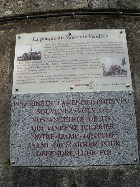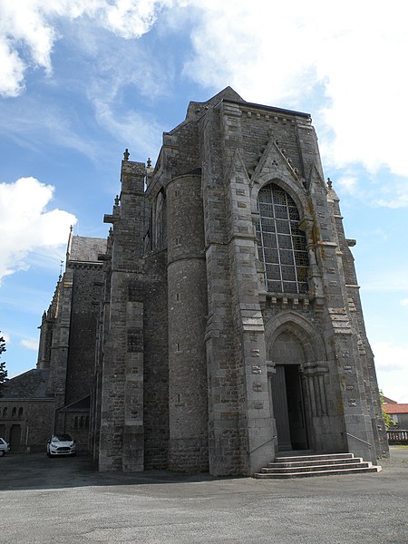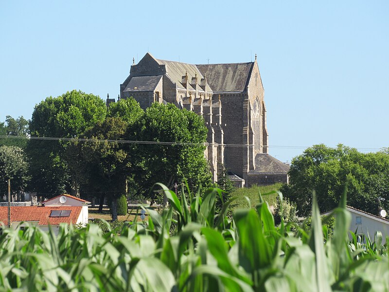 L'origine de l'église tient au pèlerinage marial né de la découverte, par un laboureur, d'une statue. Une modeste chapelle fut d'abord érigée puis agrandie au fil du temps. Le pèlerinage connut un nouvel essor au XIXe siècle et un vaste édifice fut envisagé en 1854. Le clocher fut entrepris en 1856 d'après les plans d'Octave de Rochebrune. Entre 1865 et 1872 on construisit un calvaire doté d'une chapelle intérieure et de sept fontaines. Les plans de la basilique sont de l'architecte Alcide Boutaud et le chantier s'étendit de 1891 à 1929. L'ancienne chapelle fut démolie, seul le clocher ayant été conservé, et la fin des travaux fut confiée à Albert Boutaud, son fils. L'édifice présente un plan en croix latine non orienté. La nef est couverte de voûtes de style angevin. Le transept donne accès, d'un côté, à la sacristie et, de l'autre, à la salle des confessionnaux ; sur chacun de ses bras s'ouvre une chapelle septentrionale. Le bras ouest est appuyé contre le clocher de l'ancienne chapelle. Le chœur s'organise autour d'un déambulatoire bordé de cinq chapelles rayonnantes, avec une chapelle axiale plus marquée. Un clocher-porche, équipé d'une tribune intérieure, ouvre l'église côté sud, et deux tourelles d'escalier flanquent les angles du clocher. Les verrières du transept et les vitraux des bas-côtés représentent les principaux sanctuaires français.